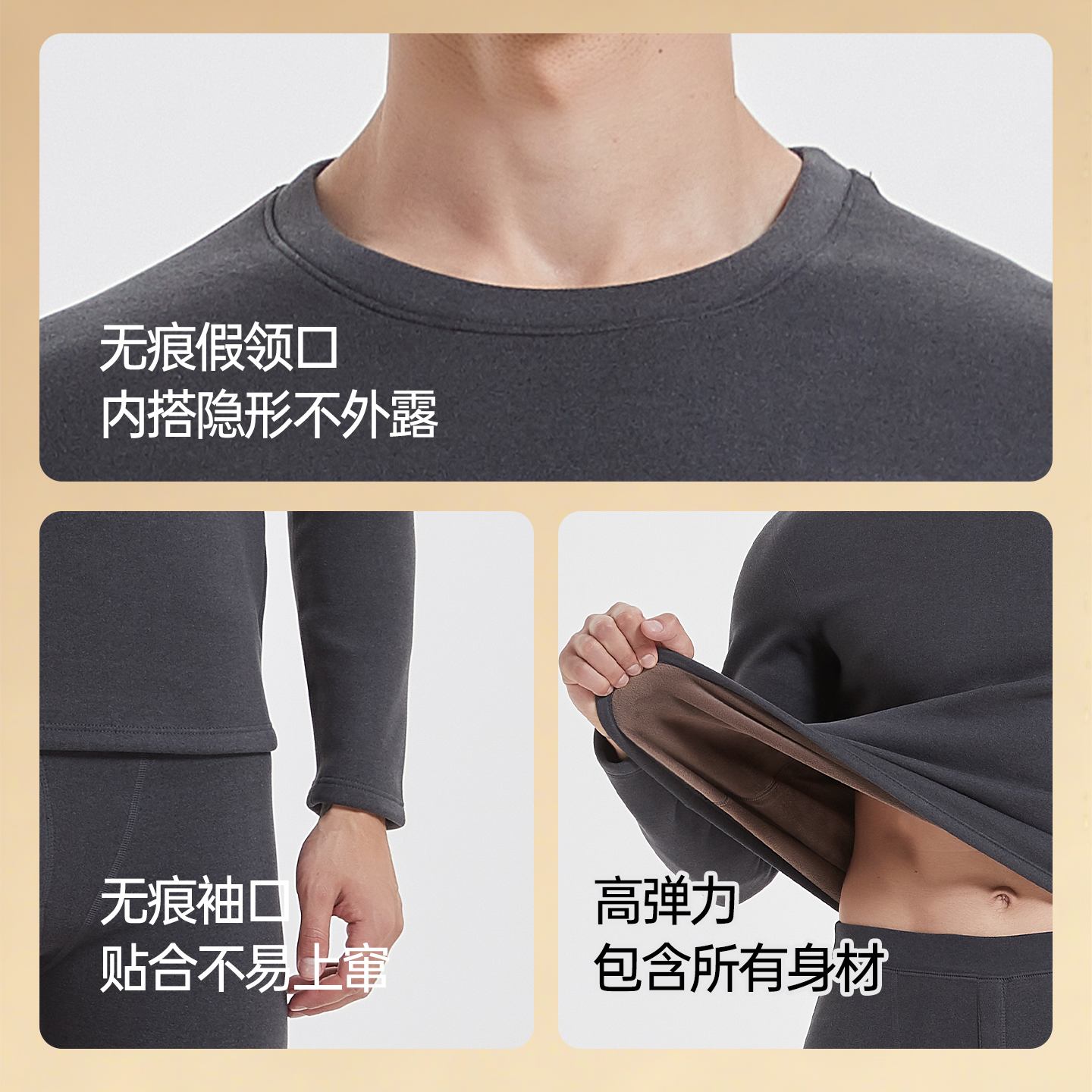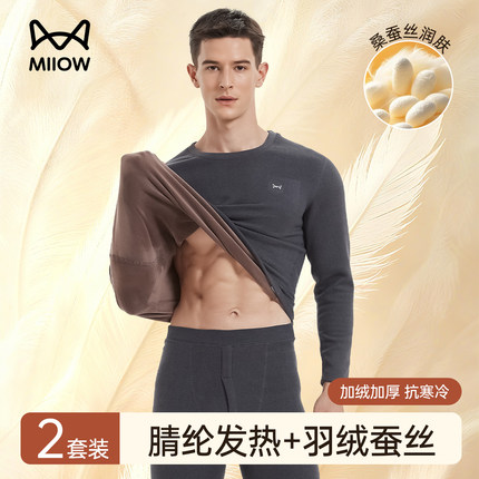 猫人保暖内衣男款加绒加厚羽绒蚕丝发热打底秋冬季秋衣秋裤套装男
