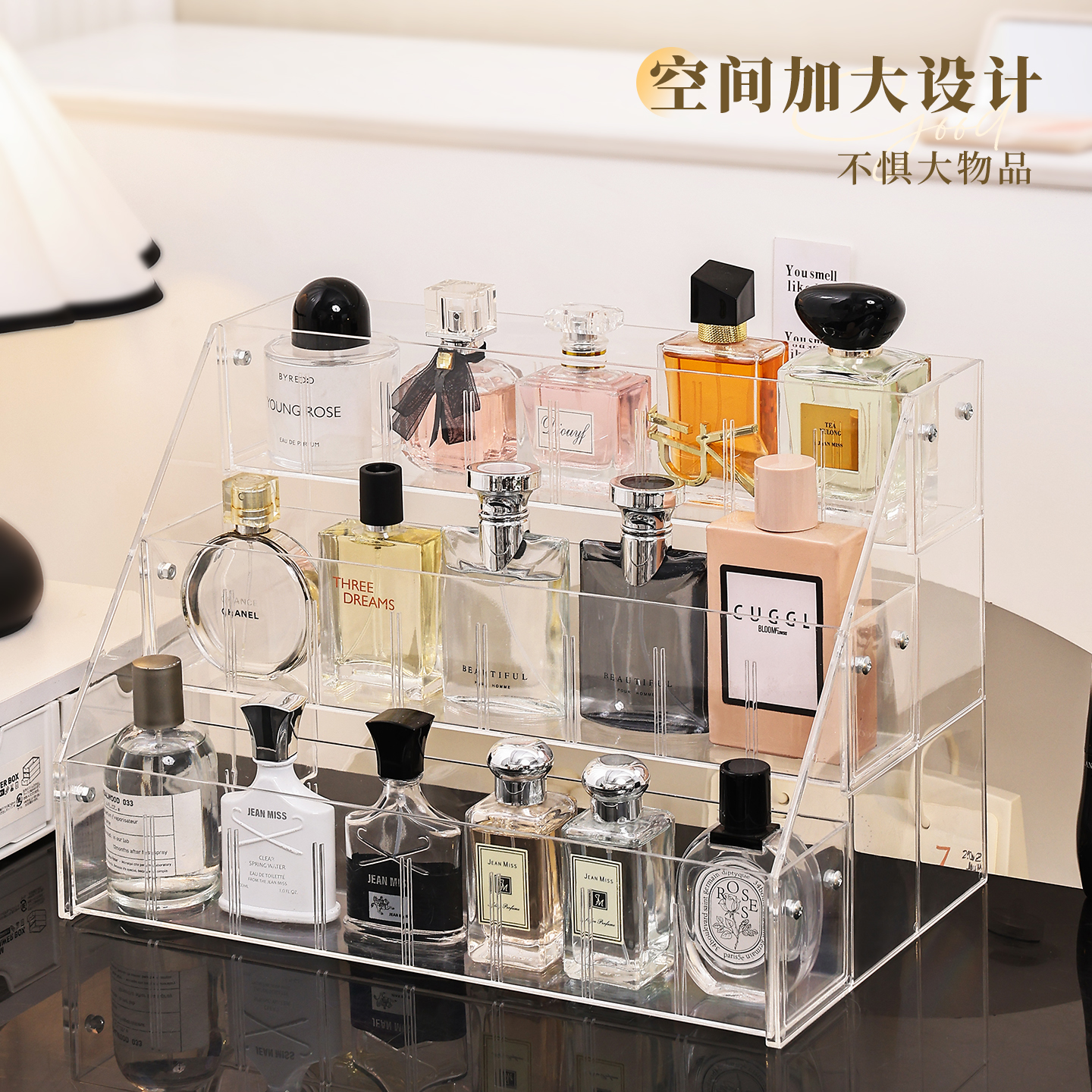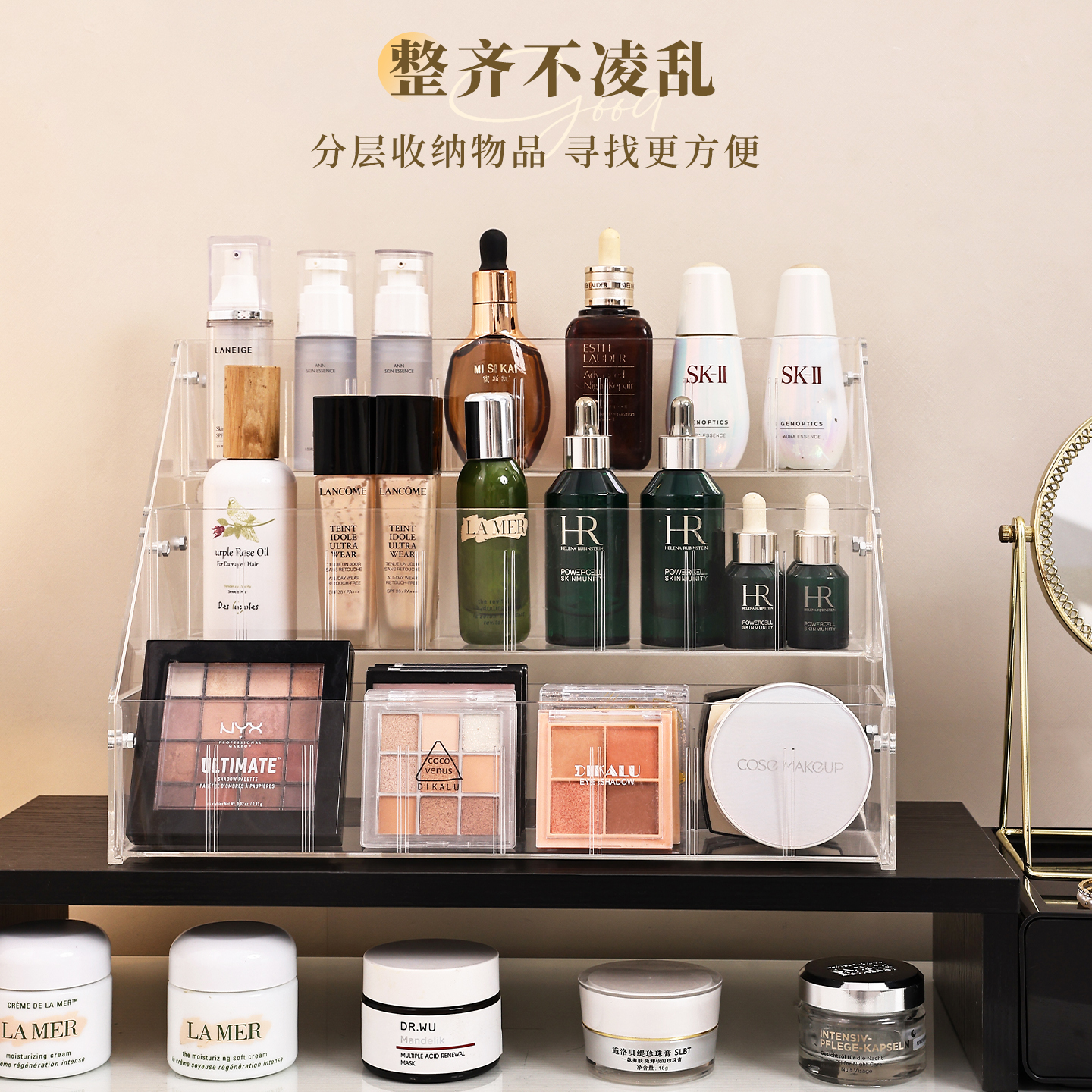 阶梯式化妆品置物架亚克力展示架桌面分层口红香水架眼影盘收纳盒