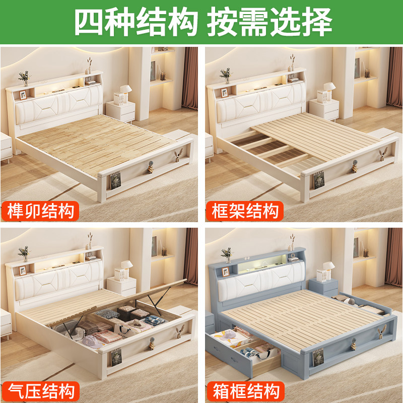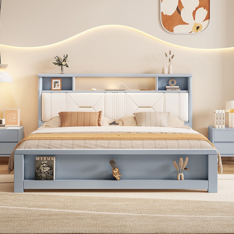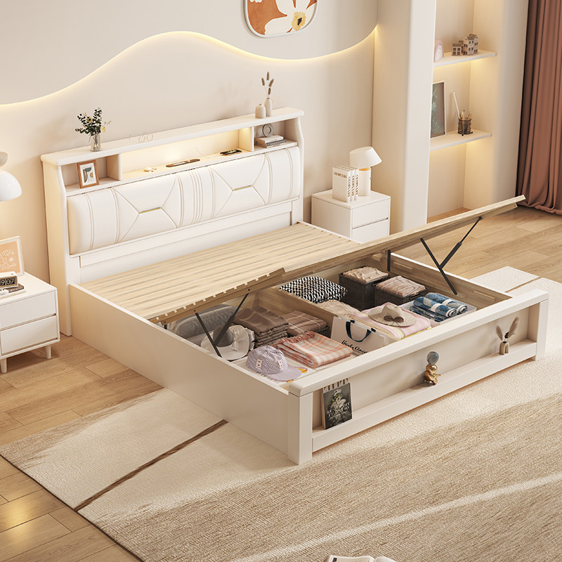 尚品宅配全实木床现代简约白色1.8m奶油风双人轻奢1米5北欧主卧软