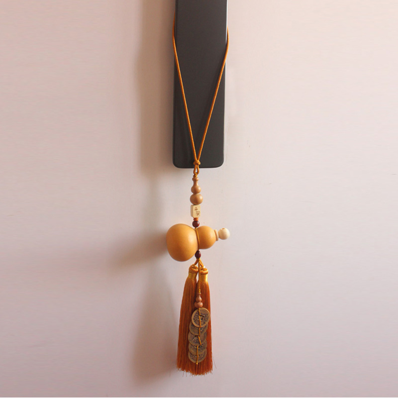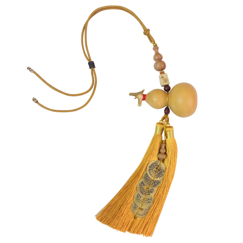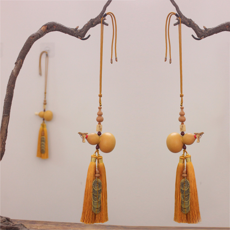 五帝铜钱天然葫芦挂件门对门大门对客厅卧室玄关黄色流苏精品挂饰