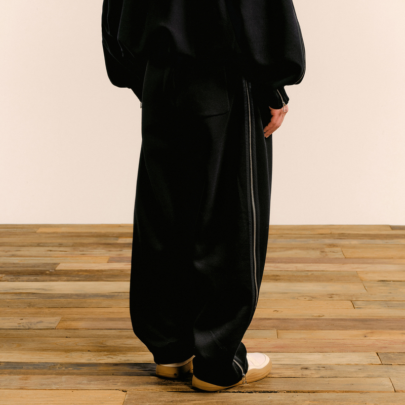 速写男装秋冬新款宽松弯刀裤休闲拉链阔腿设计感时尚潮流男士长裤