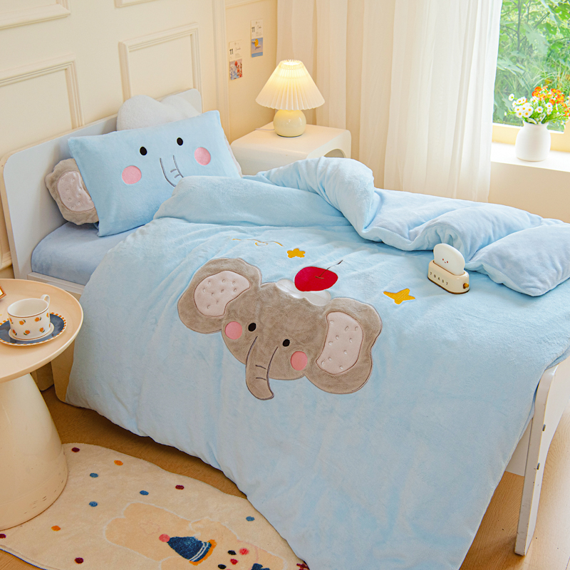 幼儿园加厚牛奶绒被子三件套儿童冬季宝宝午睡保暖被褥六件套床品