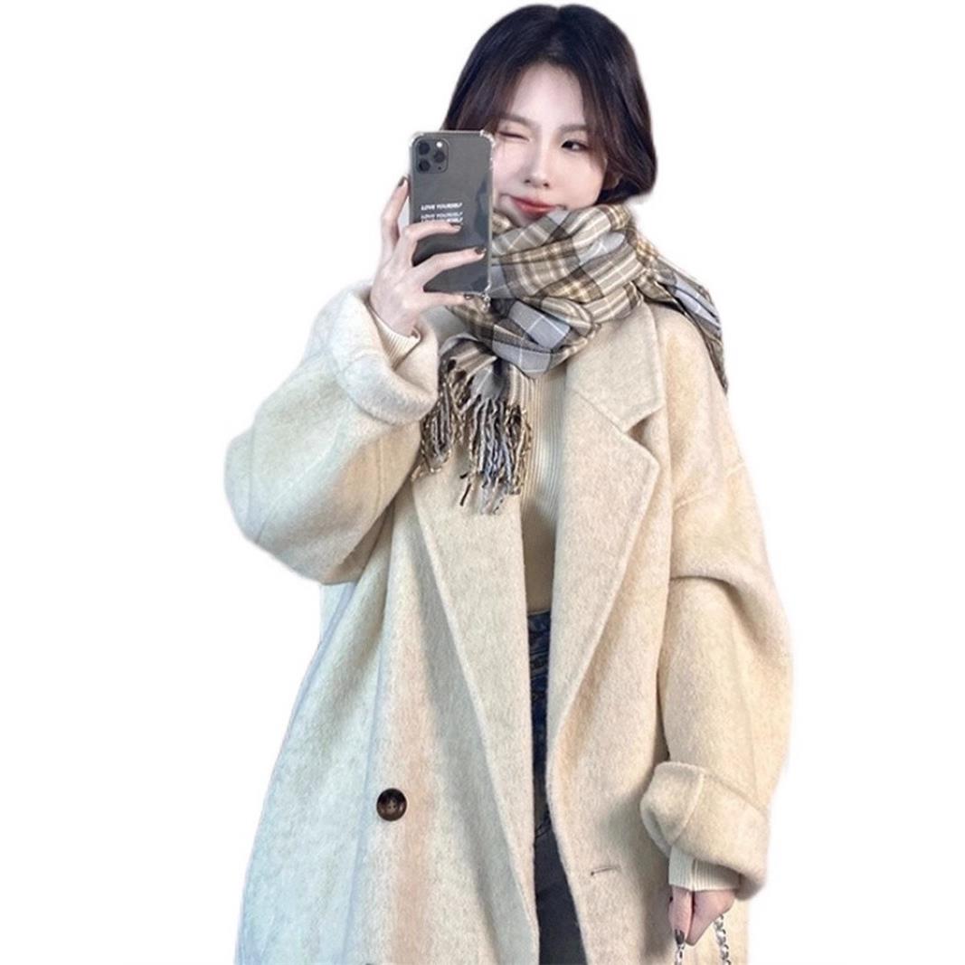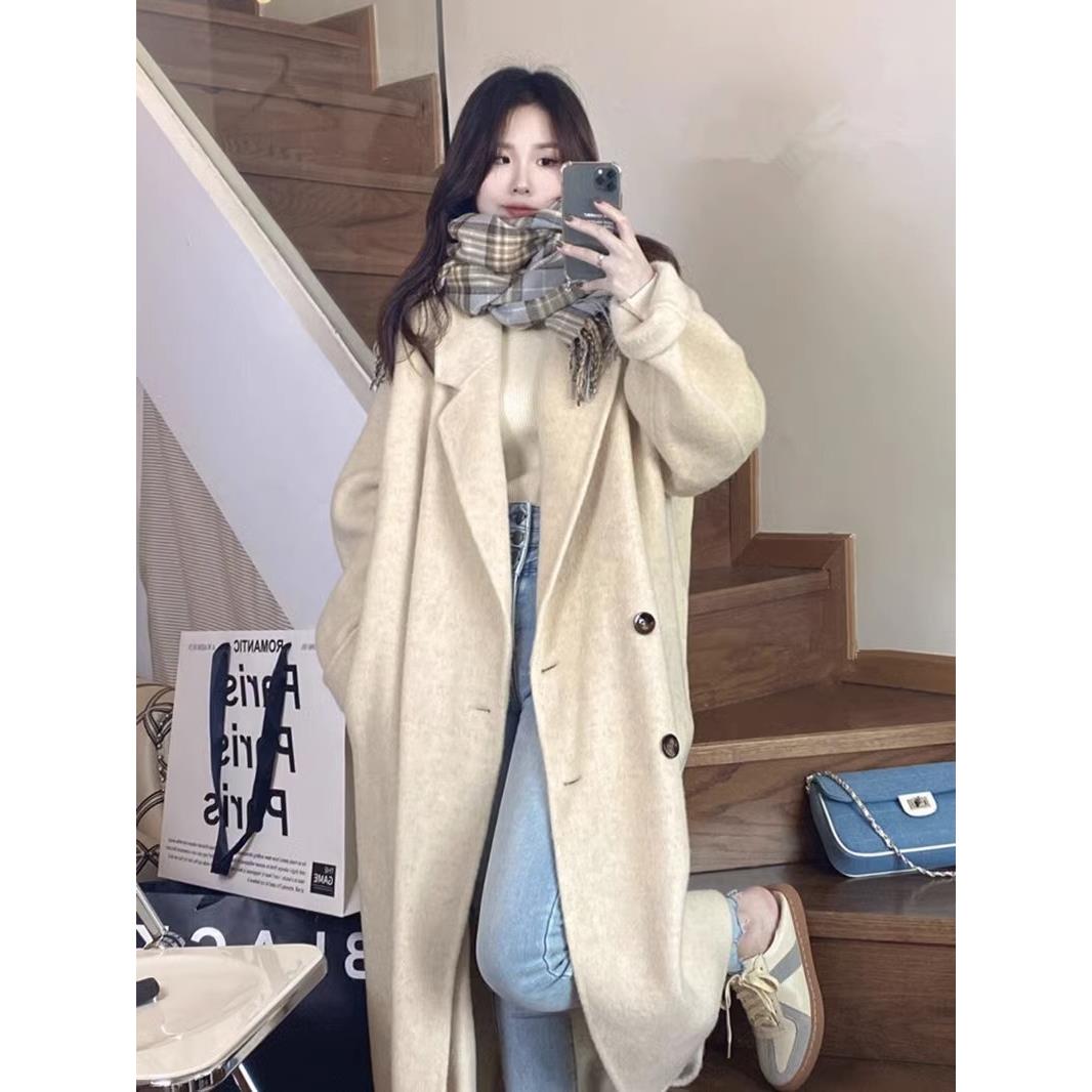燕麦色双面羊绒大衣女2025秋冬新款韩版宽松中长款高端羊毛呢外套