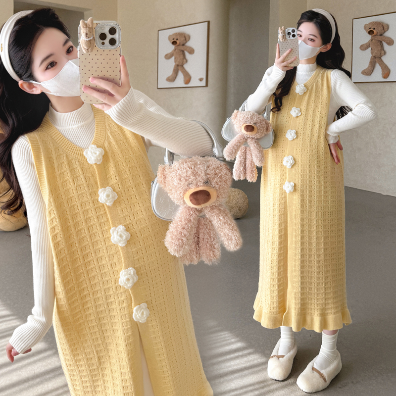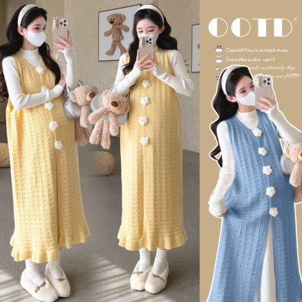 休闲针织孕妇装2025套装新款长袖百搭打底连衣裙宽松马甲裙两件套
