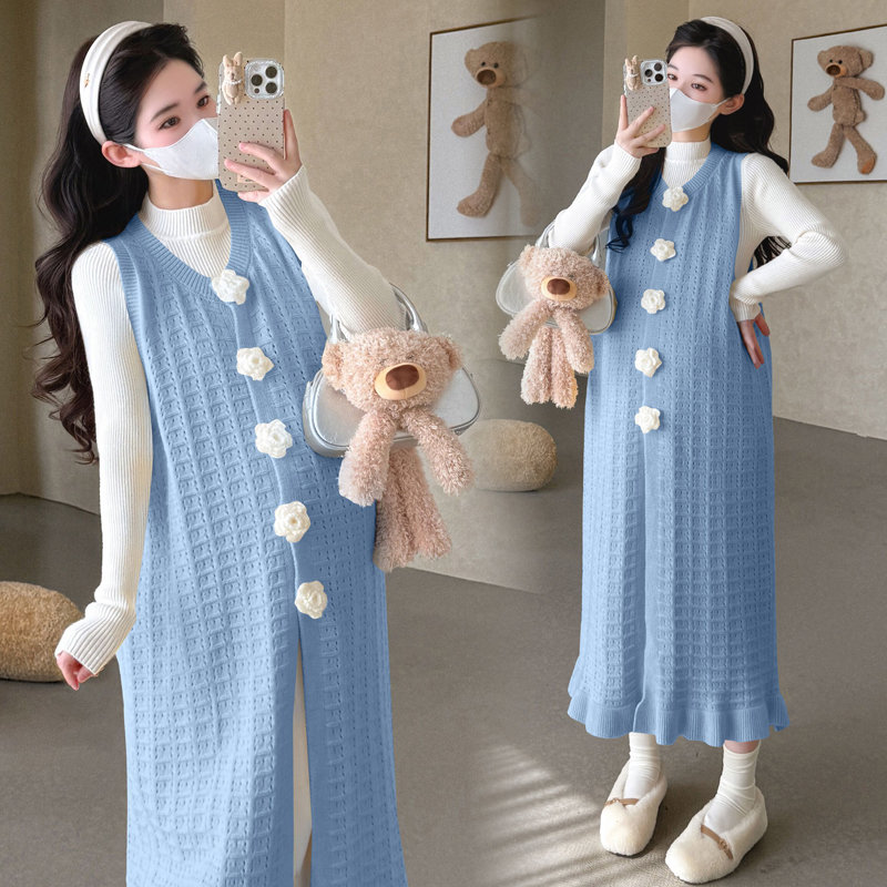 孕妇长袖连衣裙+针织马甲裙套装