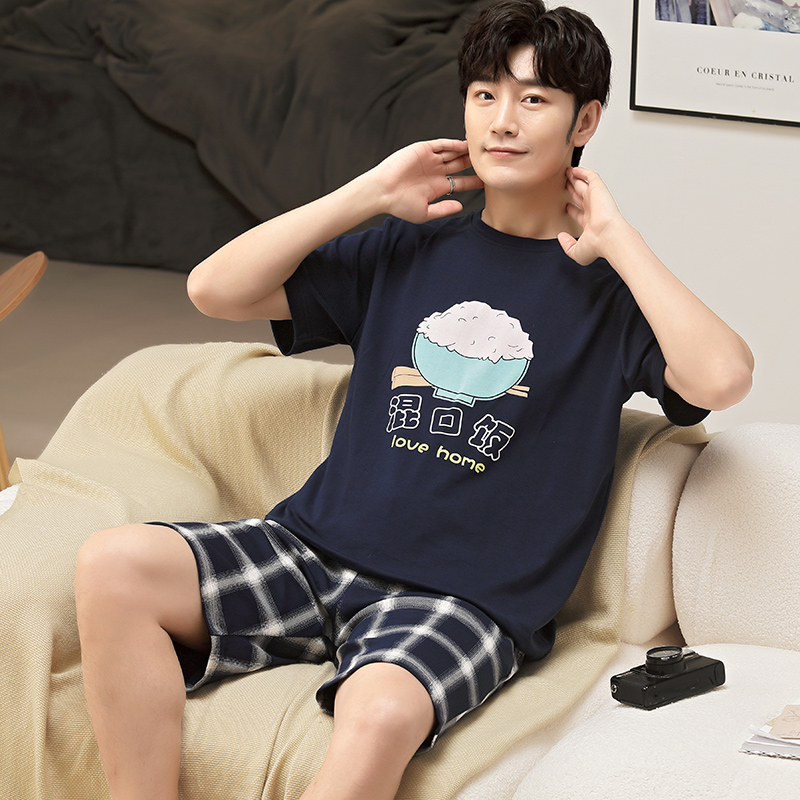 男士睡衣夏季纯棉短袖短裤加肥加大码卡通青年夏天薄款家居服套装