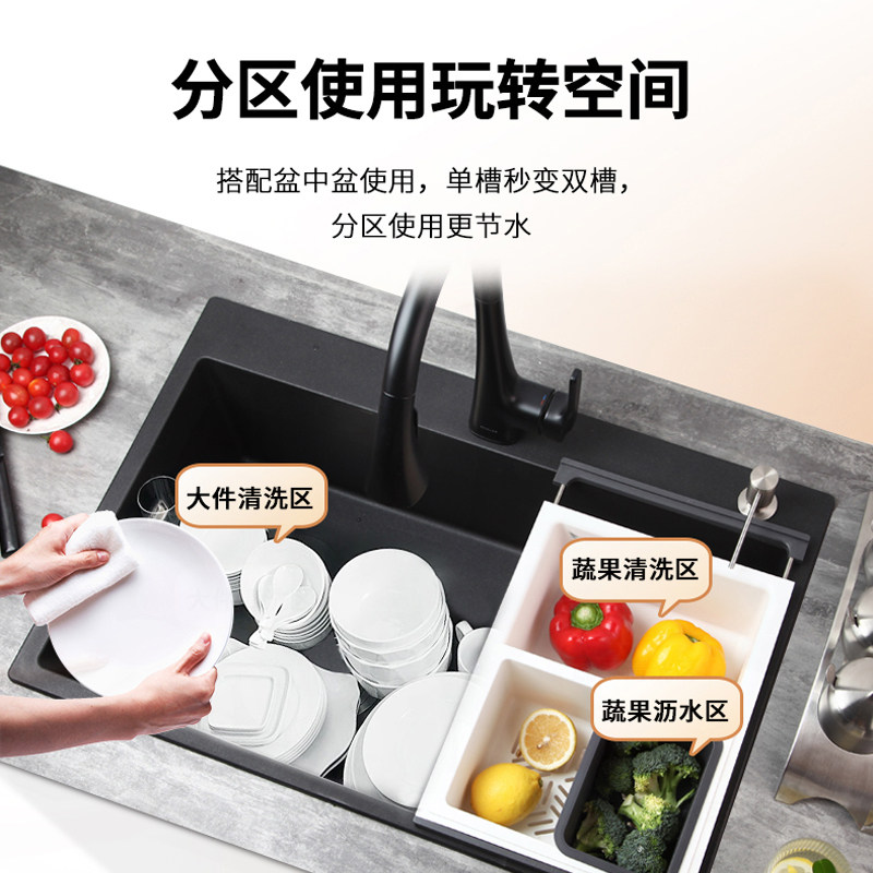科勒厨房家用石英石大单槽洗菜盆台上中台下厨盆K-32013T-2HD-UM1