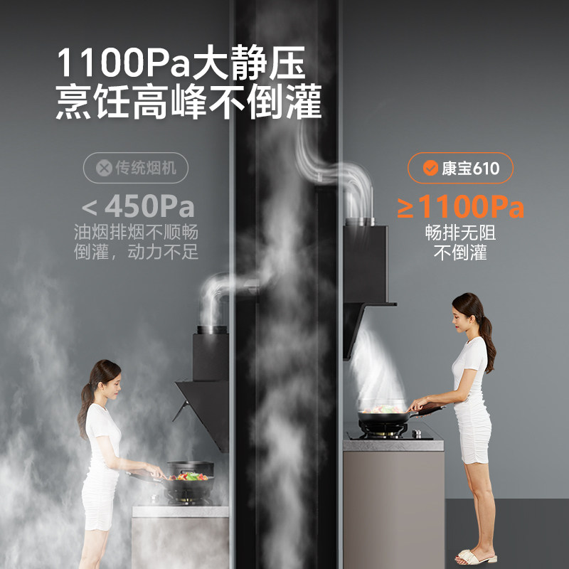 康宝BEC610油烟机浅薄机身智能挥手27m³瞬吸厨房家用壁挂低噪音