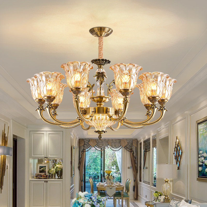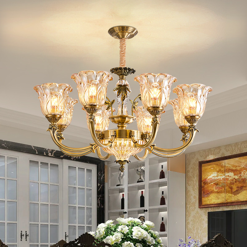 美式吊灯全铜客厅水晶复古灯具法式餐厅灯卧室灯法式简约大气中山