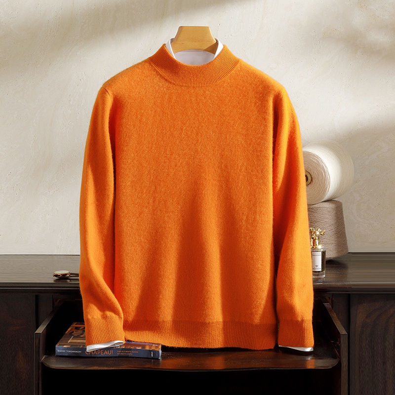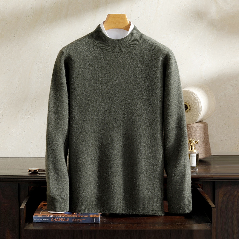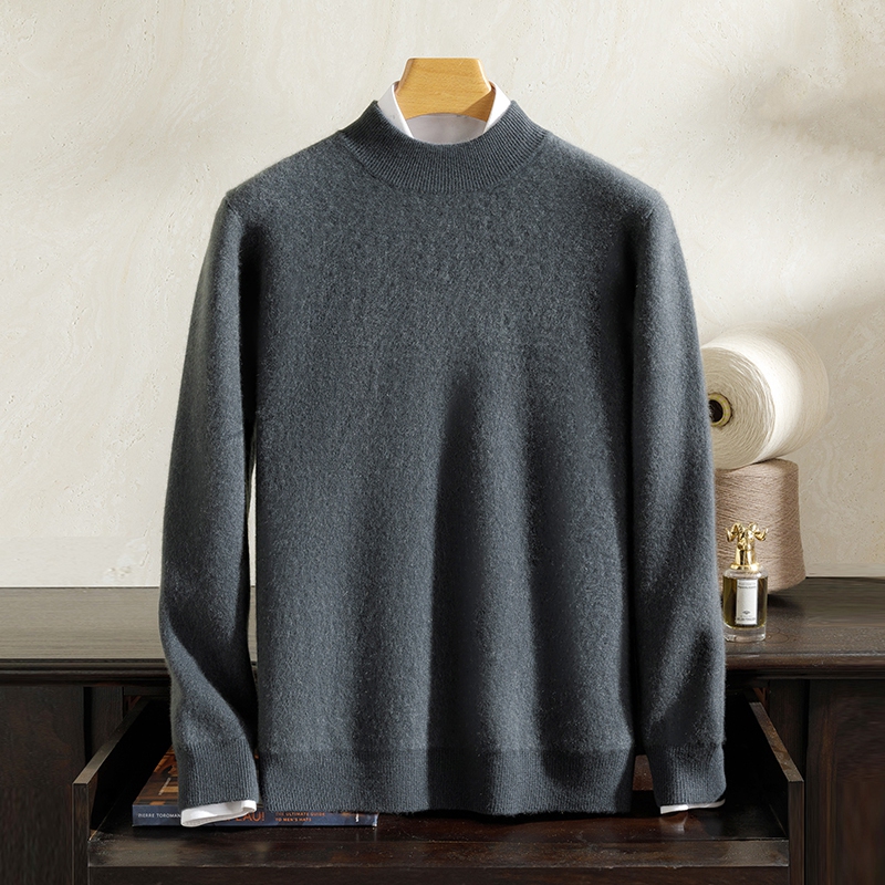 男士纯羊绒衫半高领宽松套头毛衣加厚长袖山羊绒衫保暖针织打底衫
