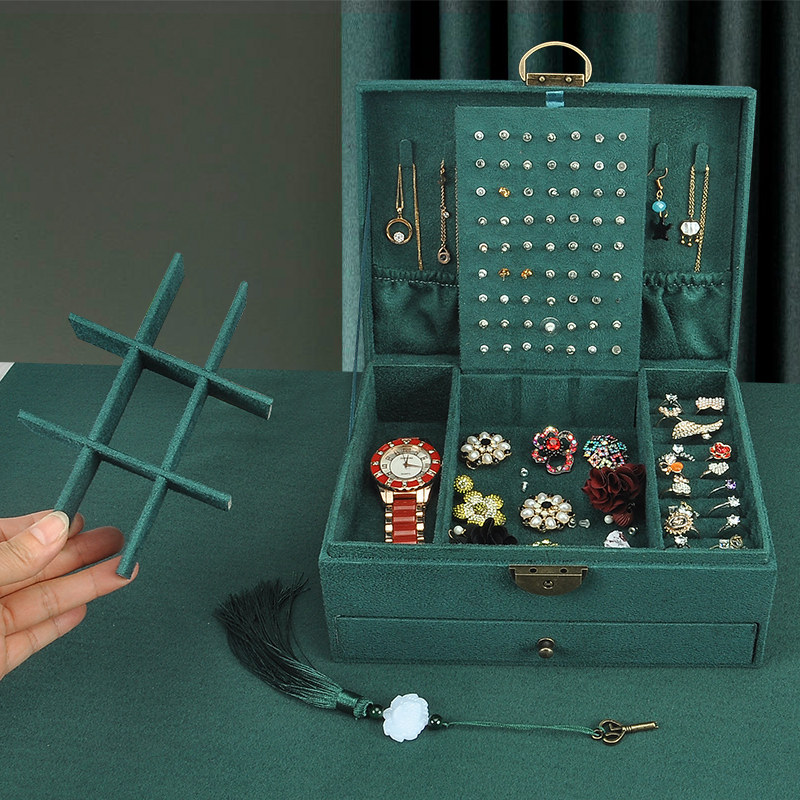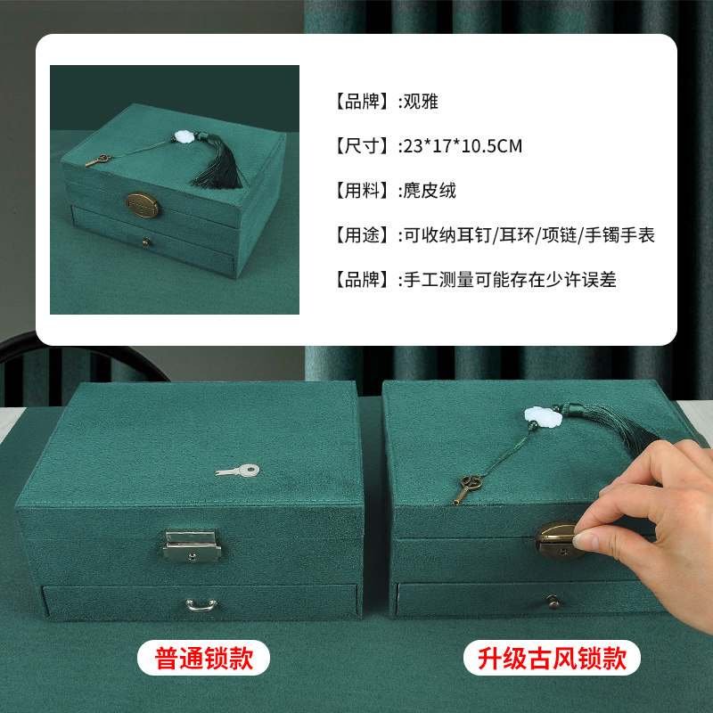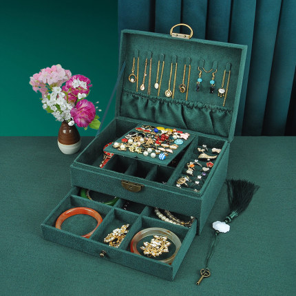 复古中国ins风手镯带锁耳钉大容量饰品抽屉式高档绒布首饰收纳盒