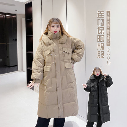 胖莹莹大码女装260斤胖MM休闲韩版棉服长款收腰保暖加厚泡芙外套