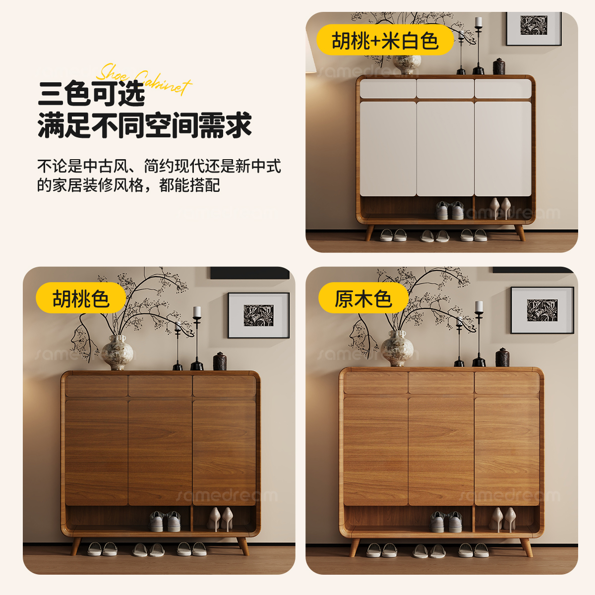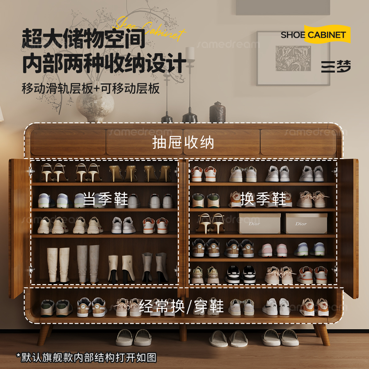 三梦全实木鞋柜家用门口收纳柜大容量入户鞋柜玄关柜一体靠墙门外