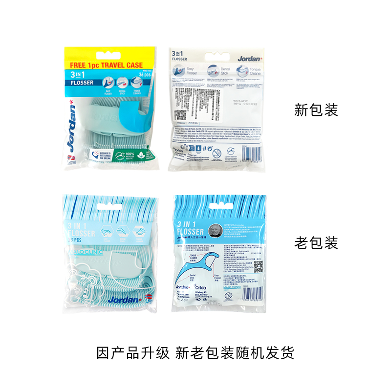 Jordan进口成人三合一牙线清洁牙缝刮舌苔送便携盒36支装