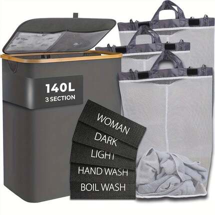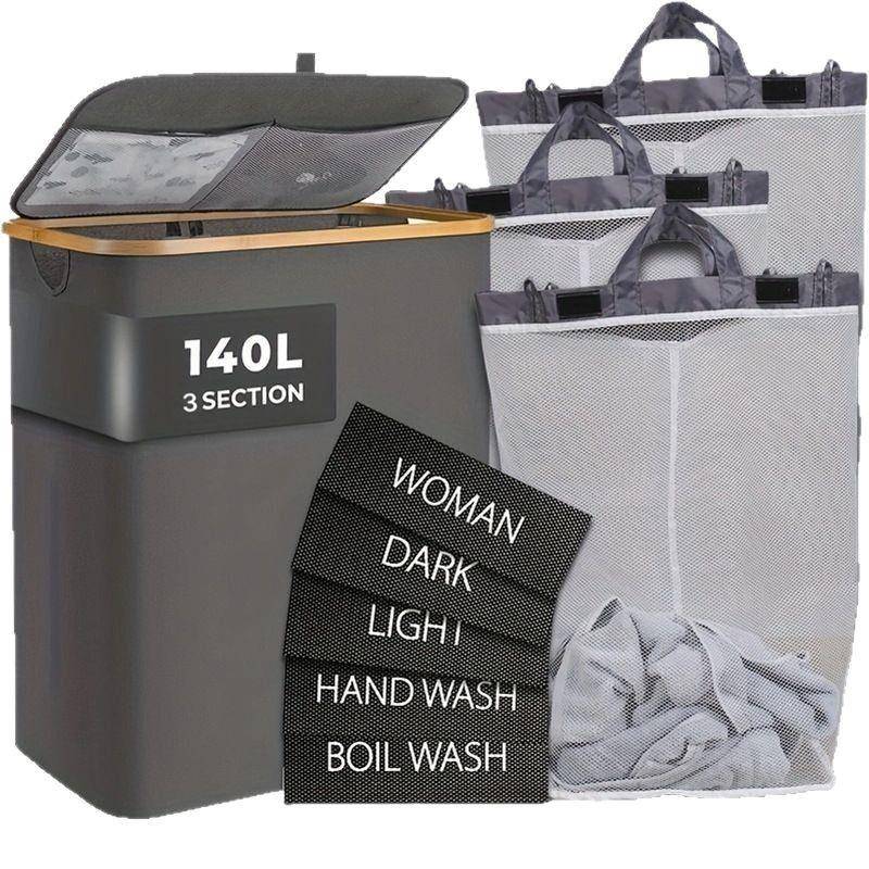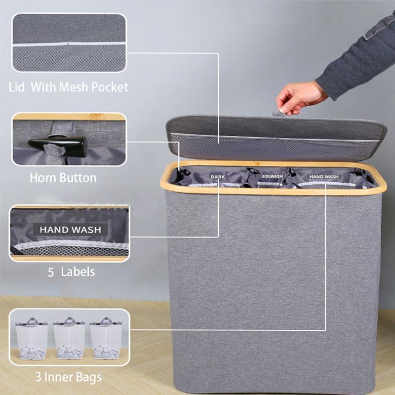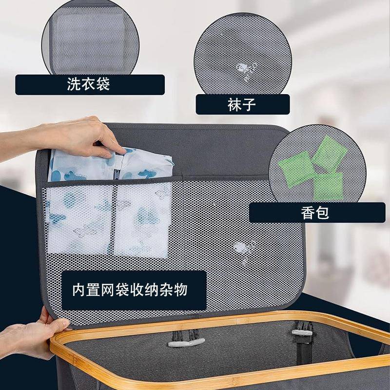 脏衣篮洗衣篮收纳折叠带盖楠竹布艺脏衣篓大号日式收纳篮配内网袋