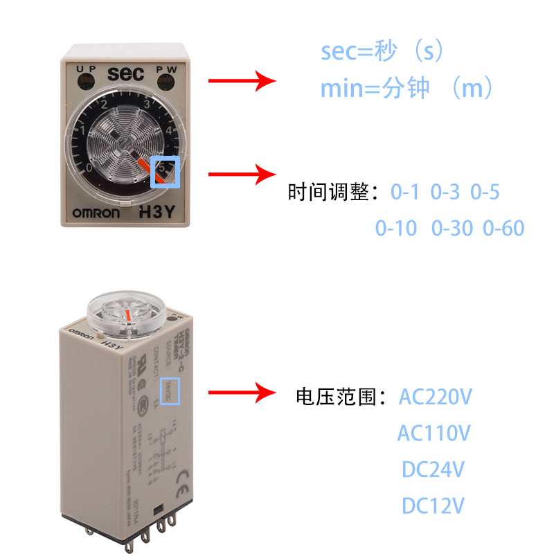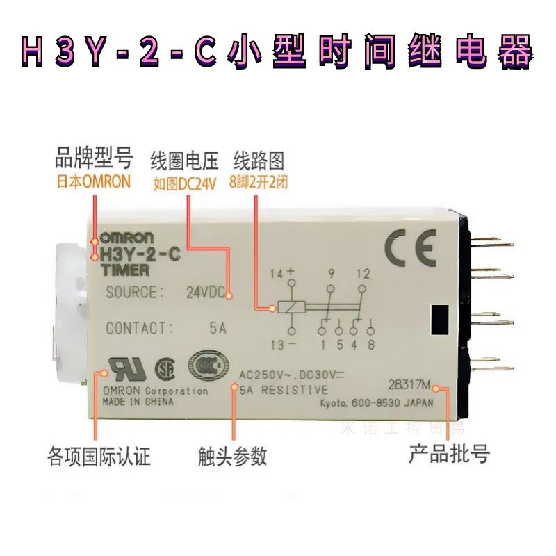 正品欧姆龙延迟时间继电器H3Y-2 H3Y-4 H3Y-2-C DC24V AC220V