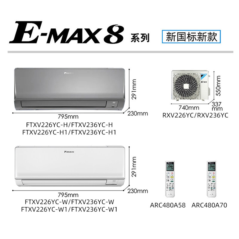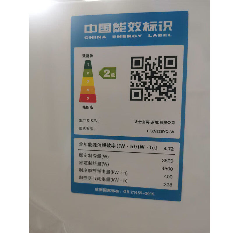 Daikin/大金 FTXV236YC-W 家用大1.5p匹二级能效冷暖壁挂机空调