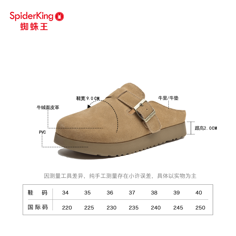 蜘蛛王包头拖2025年春夏季新款勃肯鞋平底女鞋懒人女拖鞋真皮女鞋