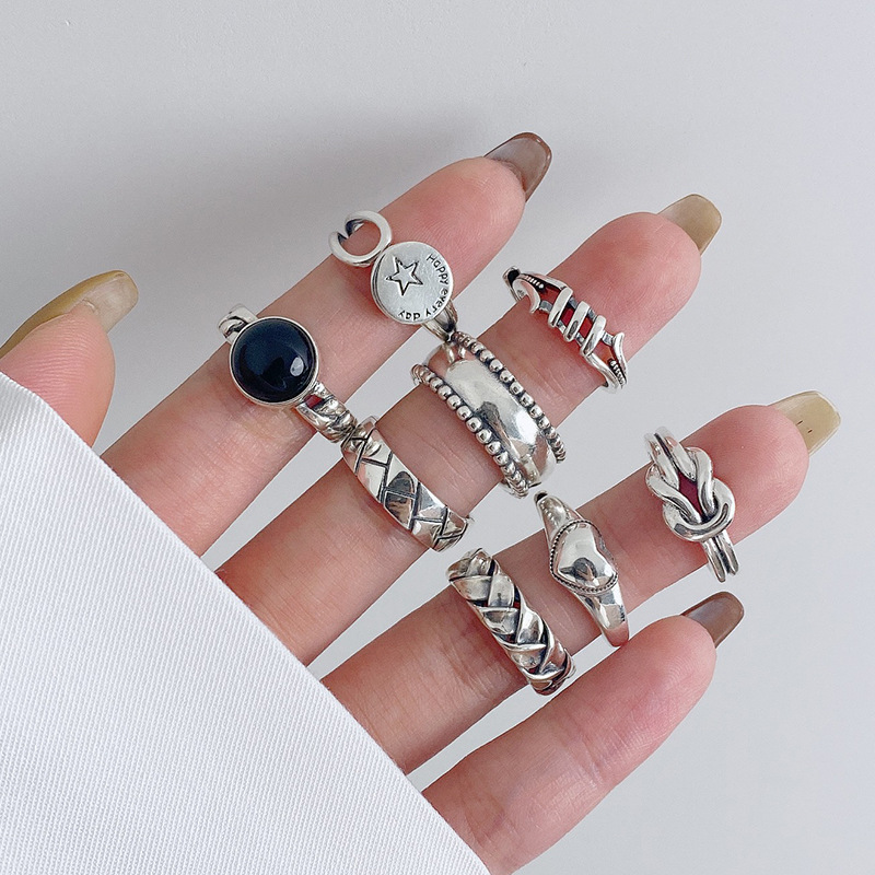 一恋韩版叠戴戒指女复古时尚重工星星麻花爱心开口指环食指戒潮