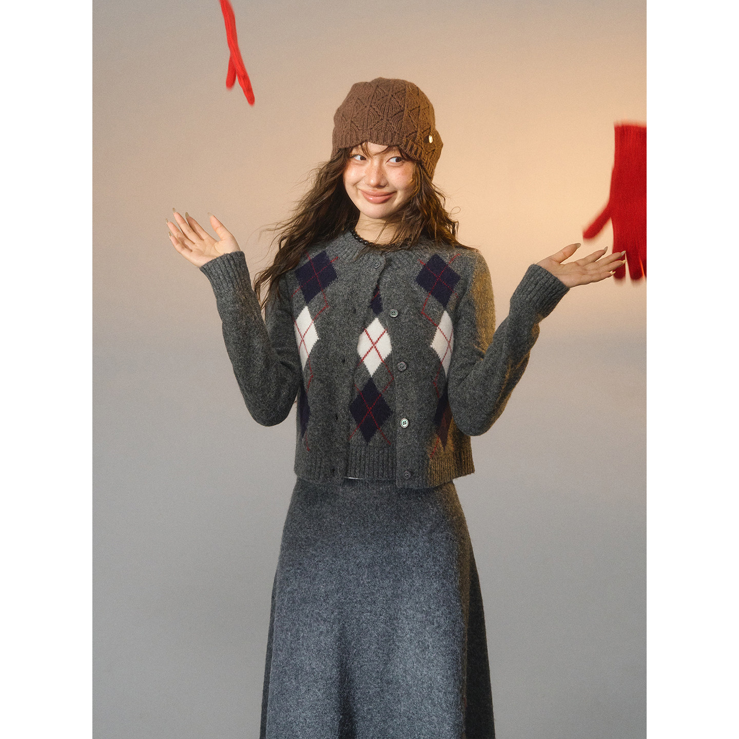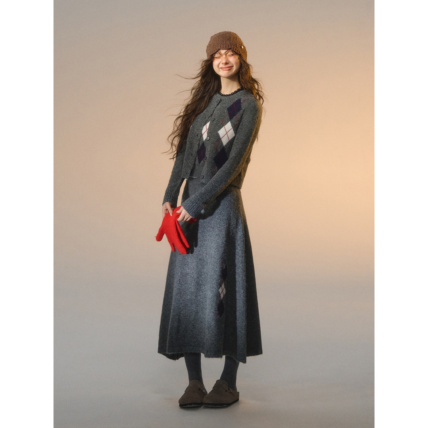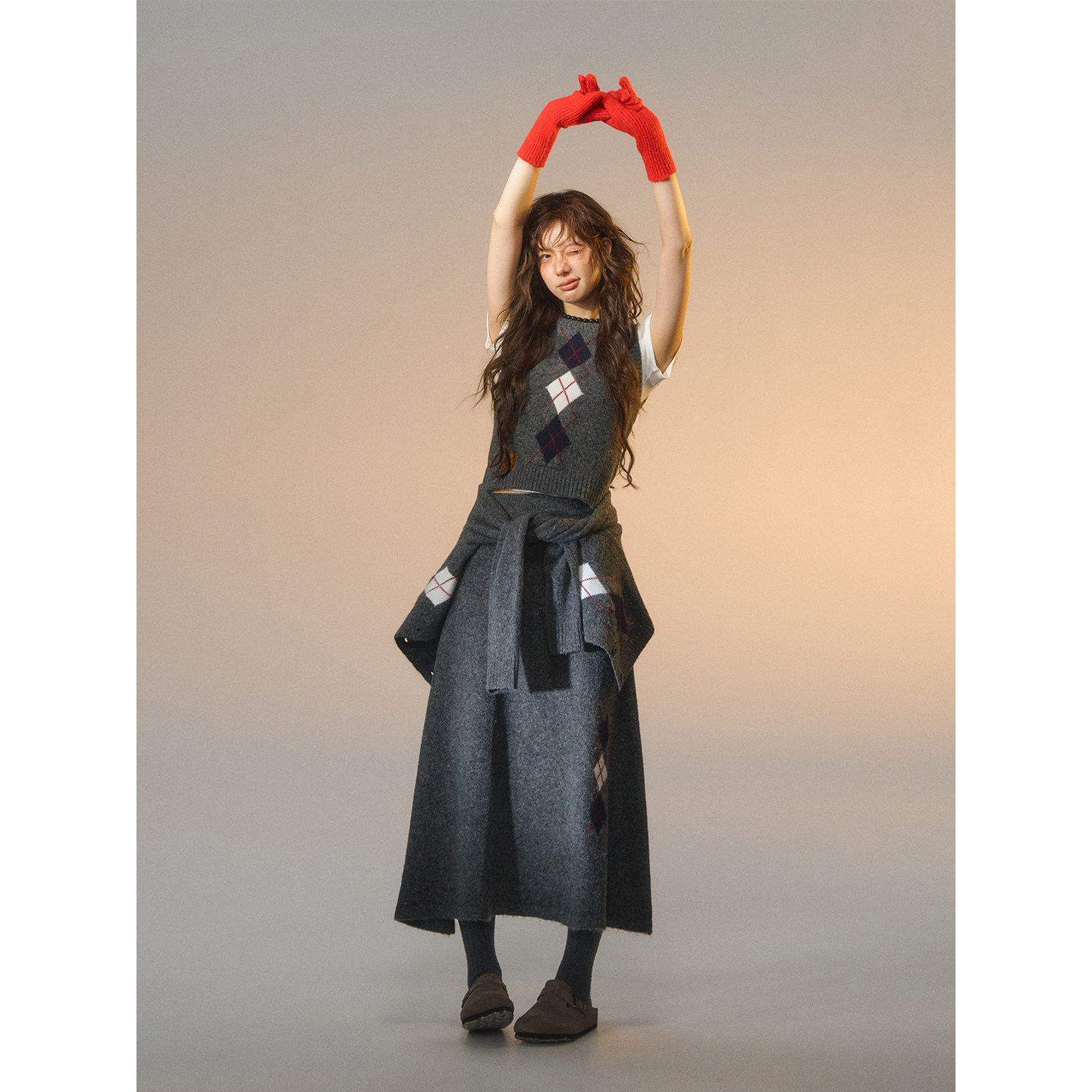 SOMESOWE繁花绒菱格圆领背心/开衫/半身裙