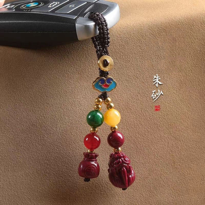 朱砂五路财神手链招财转运珠生肖男女钥匙挂件紫金本命年红绳