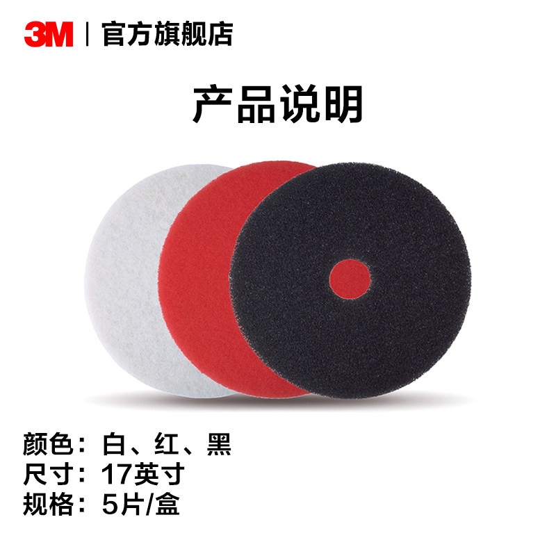 3M思高百洁垫17寸起蜡抛光打蜡片地面厨房清洁百洁布洗地5片装
