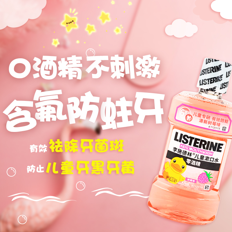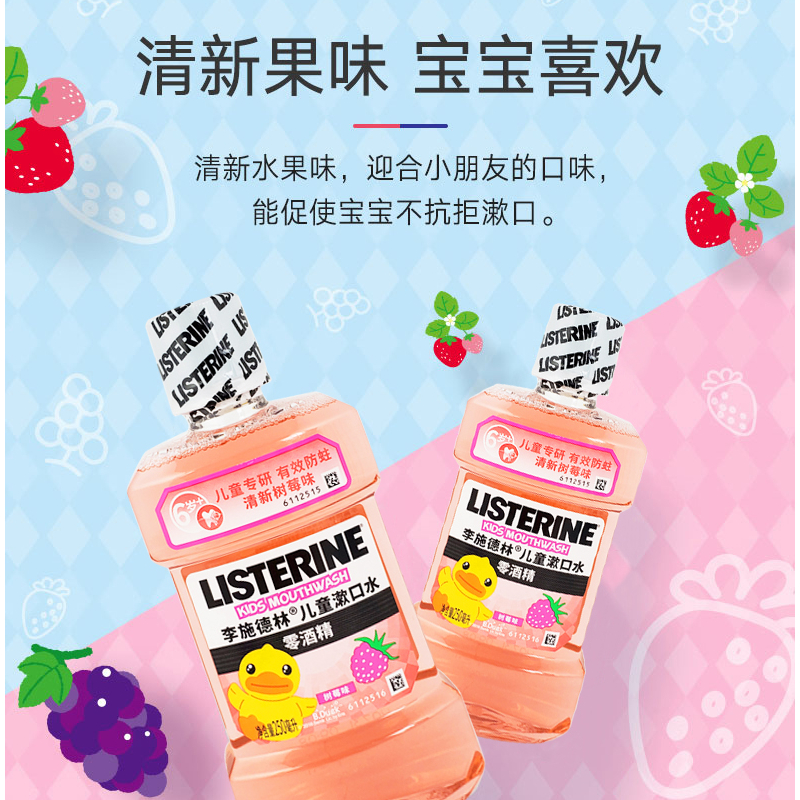 李施德林儿童漱口水防蛀牙专用龋齿杀菌清新水果味树莓味