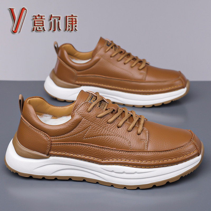 意尔康男鞋秋冬新款真皮加绒棉鞋男士头层牛皮防滑百搭运动休闲鞋