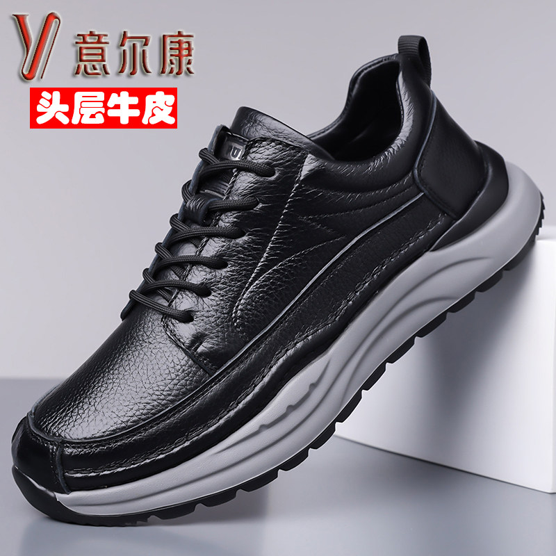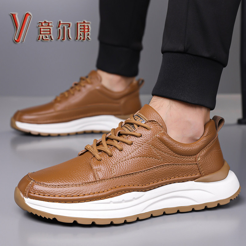 意尔康2025新款真皮软底休闲鞋男
