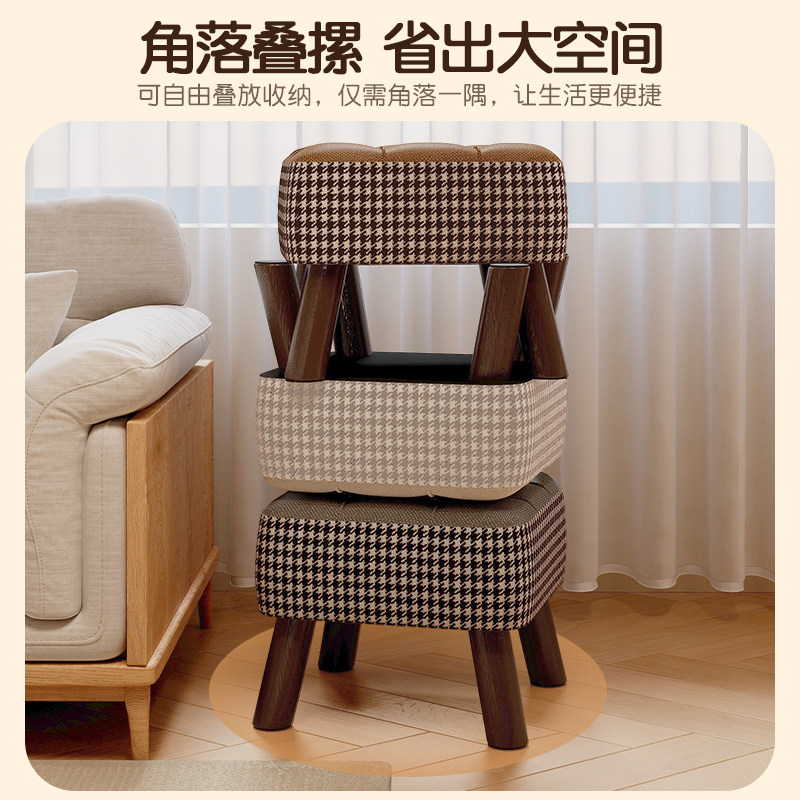 北欧风茶几小凳子软包实木小矮凳客厅家用沙发凳入户玄关换鞋凳子