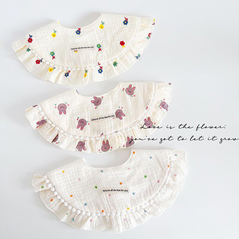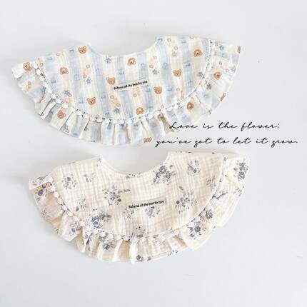 纯棉纱布婴儿围嘴公主风花朵