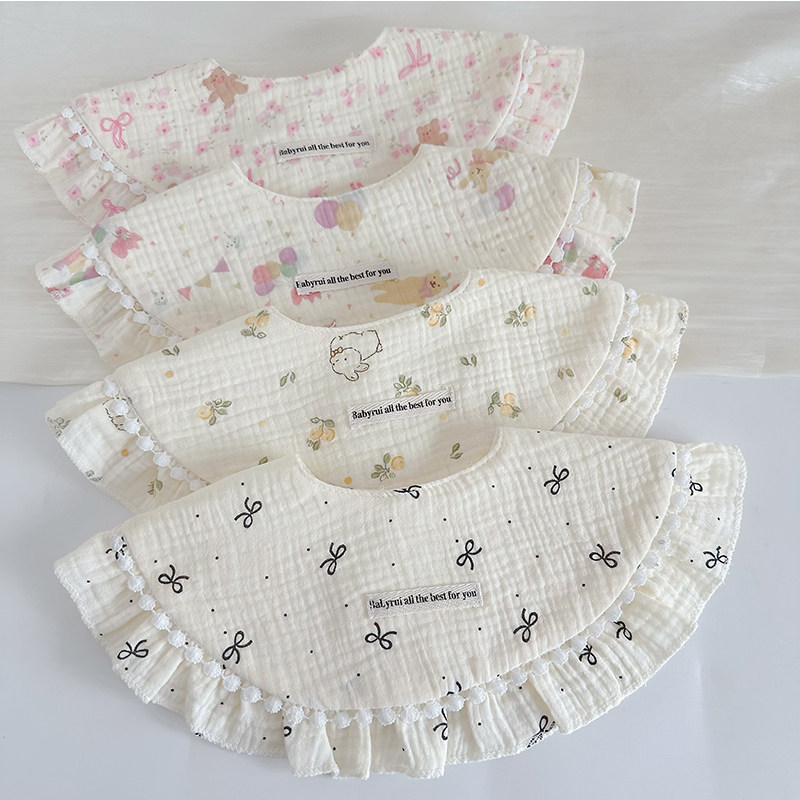 ins韩版新款宝宝棉质纱布防水口水巾公主宫廷风加大360可调节围嘴