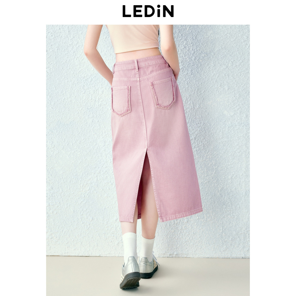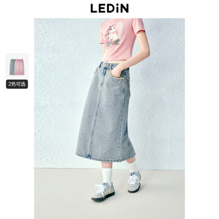 乐町牛仔半身裙夏季新款女装毛边开叉长裙清新彩牛直筒半身裙
