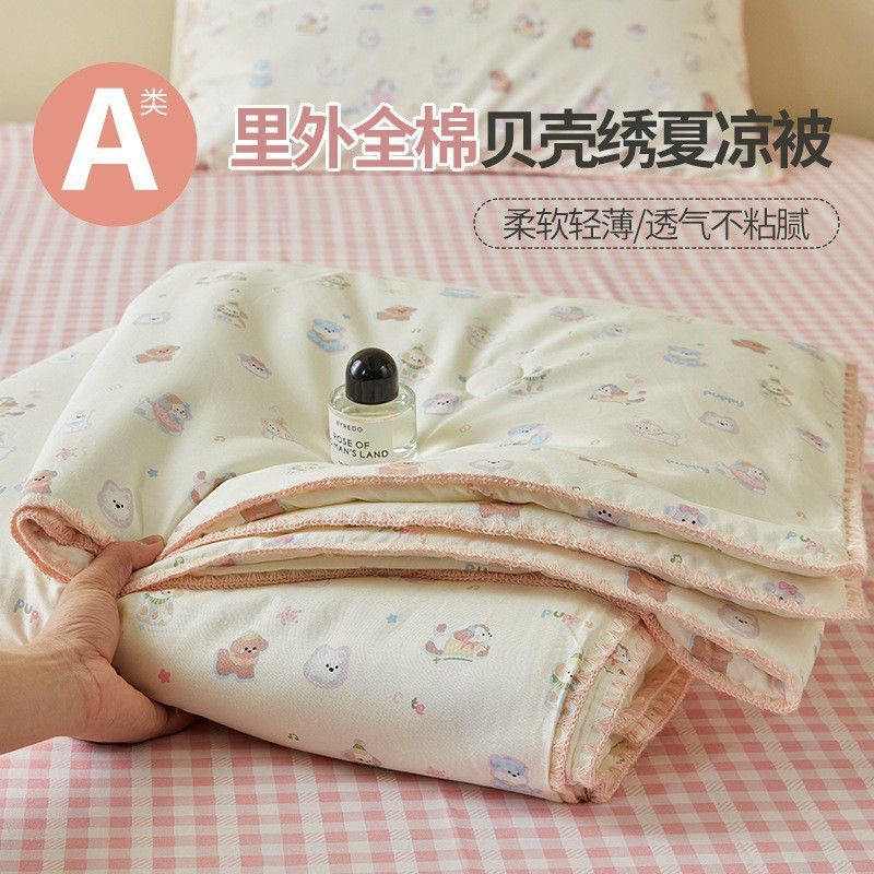100%纯棉夏季薄被子单双人学生空