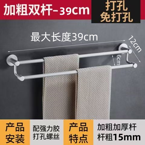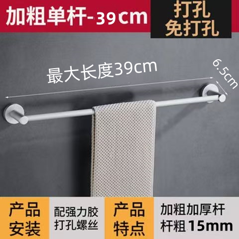 免打孔毛巾架卫生间太空铝毛巾杆单杆壁挂浴室挂件卫浴五金挂架晾