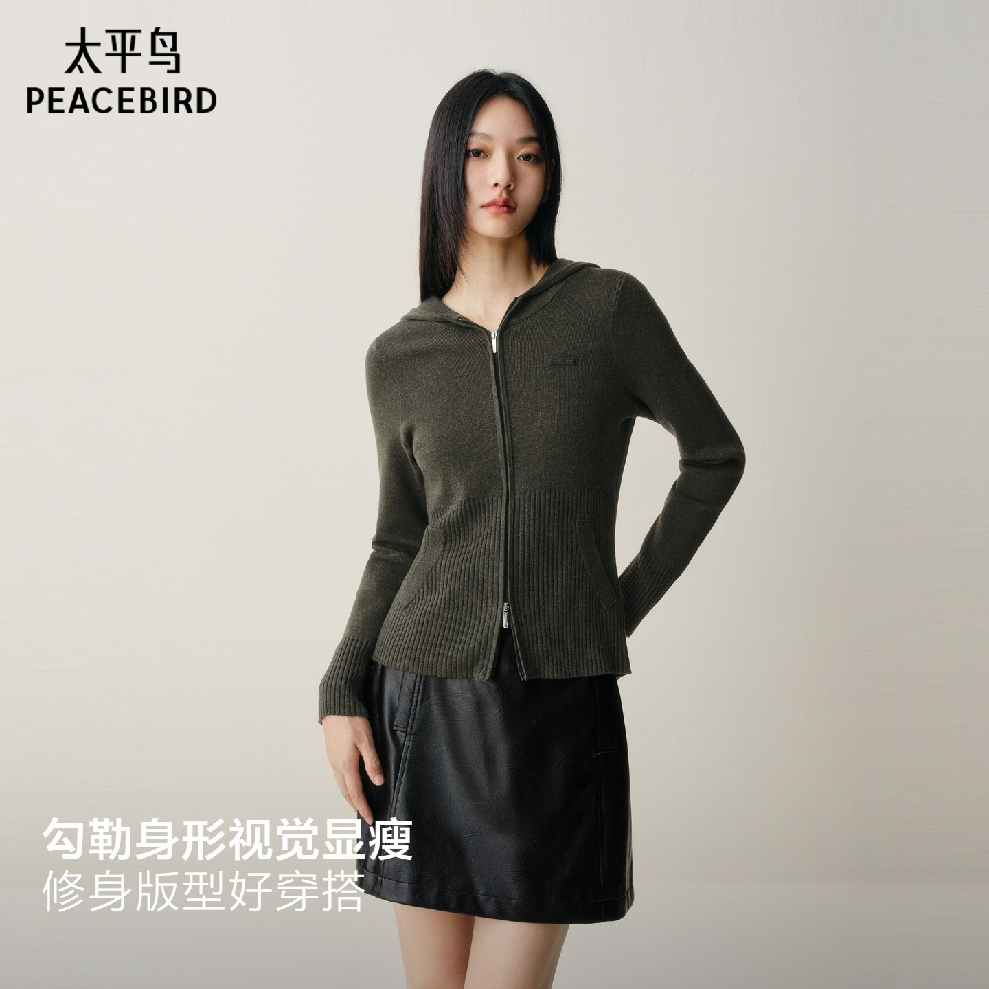 太平鸟双门襟时髦针织开衫
