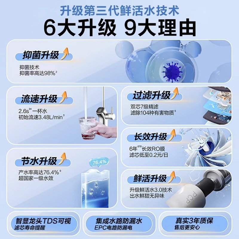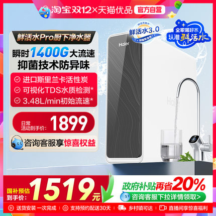 海尔净水器厨卫家用直饮反渗透鲜活水PRO1200G净饮机R762