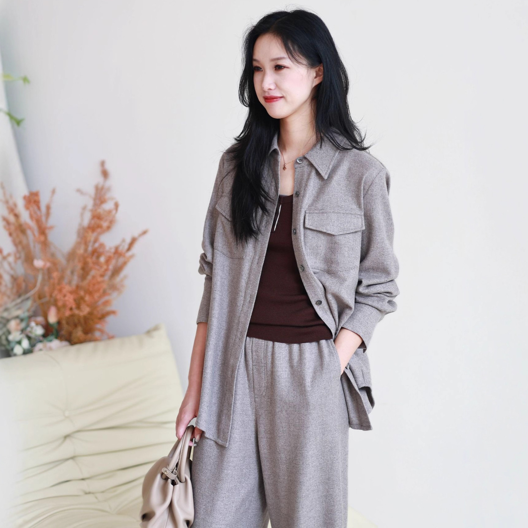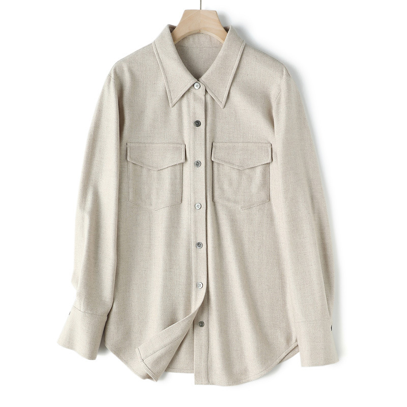 简约老钱风蚕丝羊绒翻领磨毛衬衫
