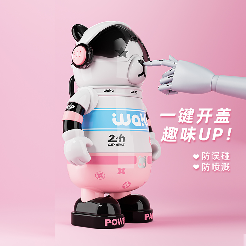 waka熊猫316不锈钢保温杯女高颜值可爱儿童吸管水壶大容量水杯子