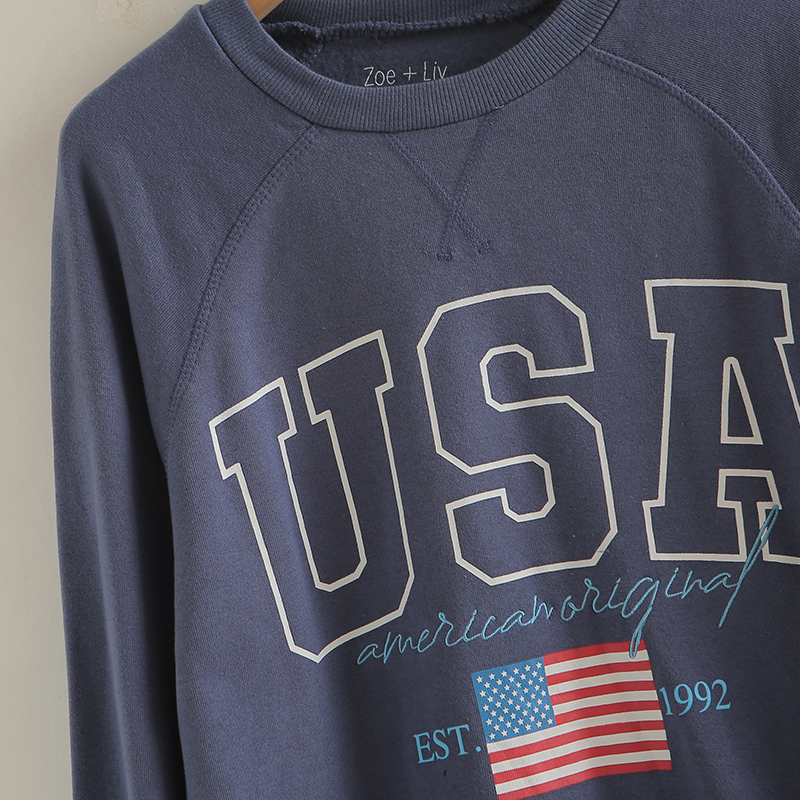 圆领卫衣女2025新款秋冬ins欧美潮牌USA韩版学生慵懒宽松大码上衣