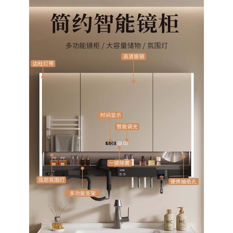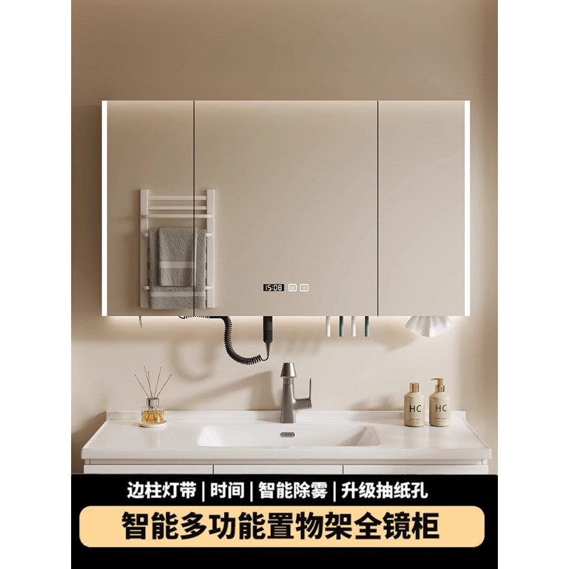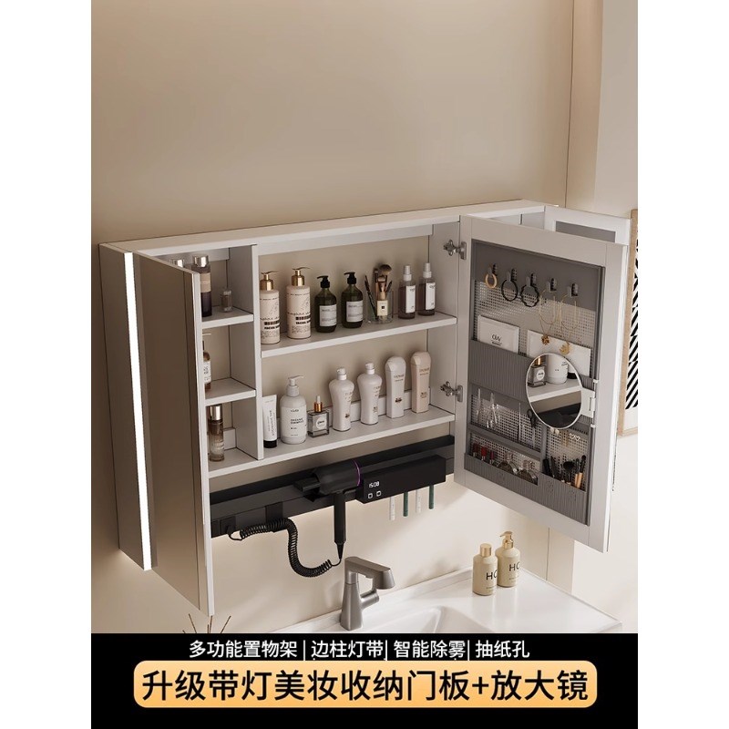 智能浴室镜柜单独挂墙式带灯防雾卫生间镜子电吹风机架收纳一体柜