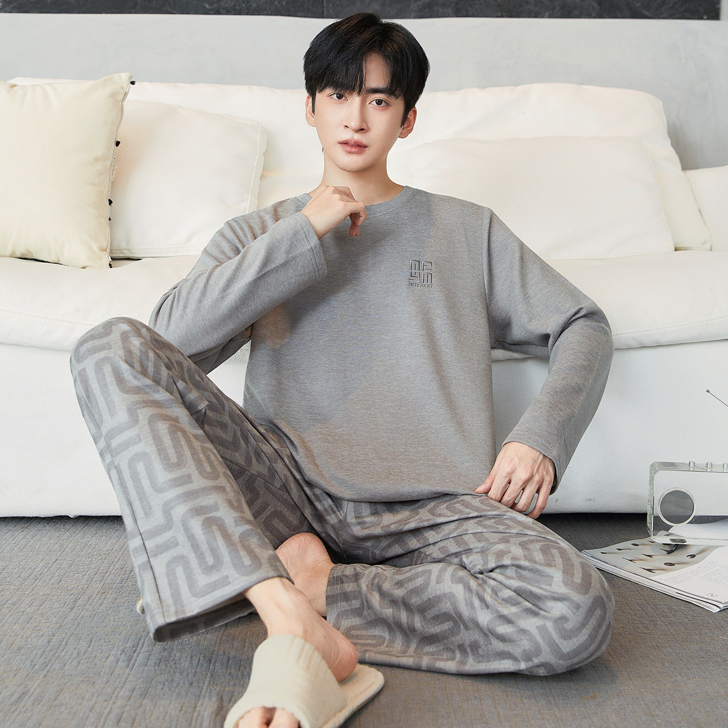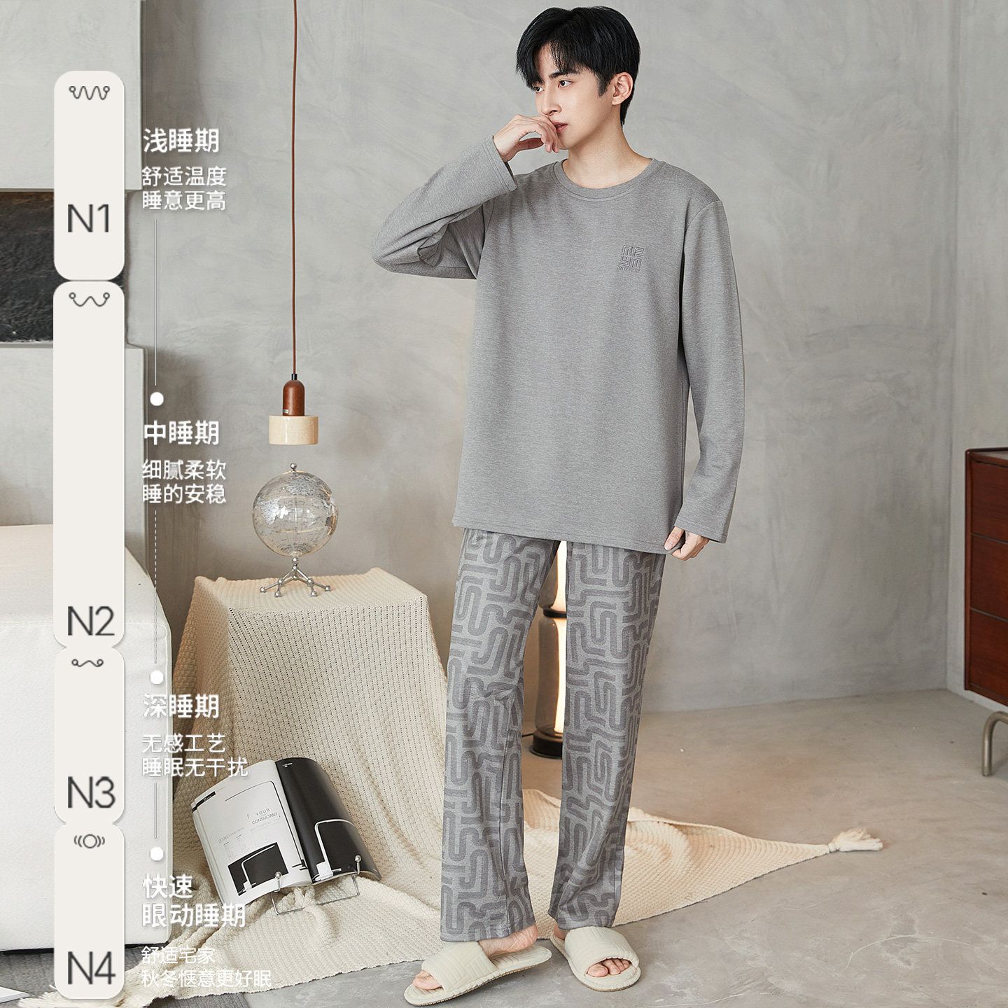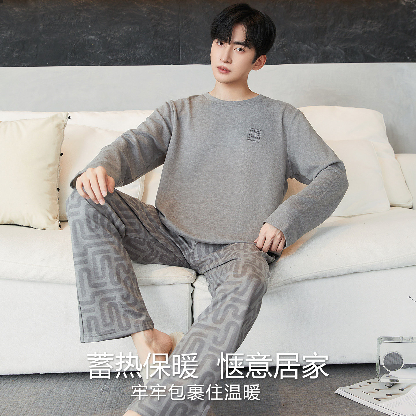 芬腾可安睡衣男款男士冬季薄绒加厚长袖2026新款花灰家居服秋冬天