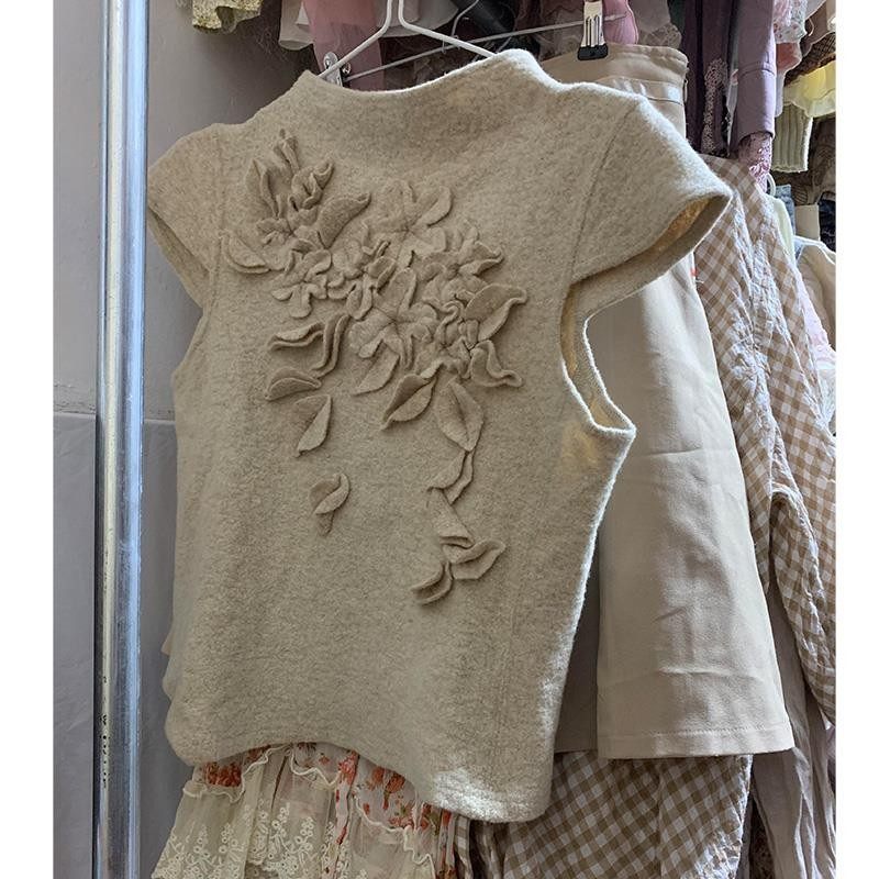 独特漂亮早秋上衣女款2025新款爆款韩系氛围感超火减龄米白色短袖