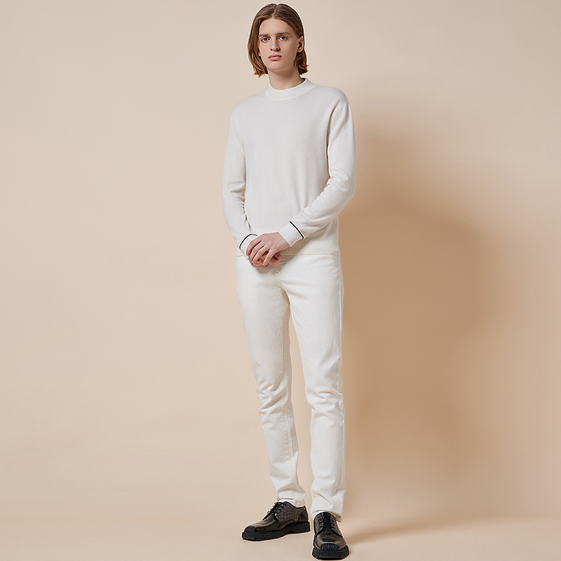 RARE威雅男装奥莱秋冬新款男士羊绒毛衣白色高领套头羊毛衫