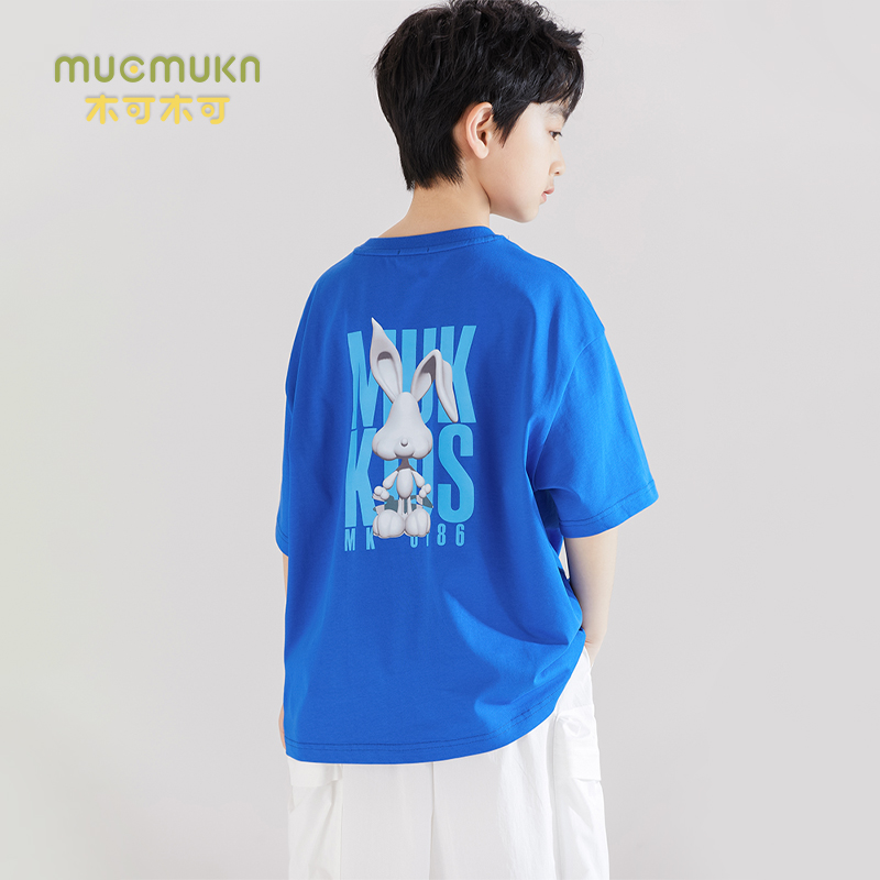男童白色短袖T恤夏季宽松休闲中大儿童男孩子圆领半袖上衣潮