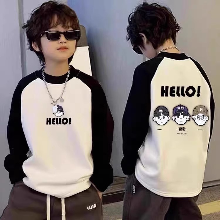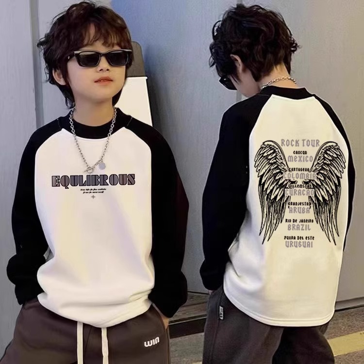 男童春秋款纯棉长袖t恤儿童秋装上衣2025新款中大童插肩袖打底衫