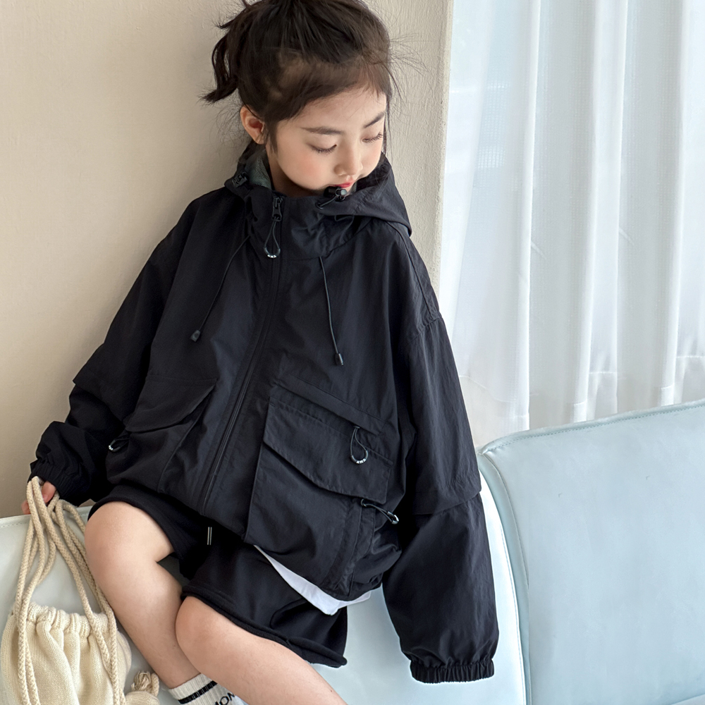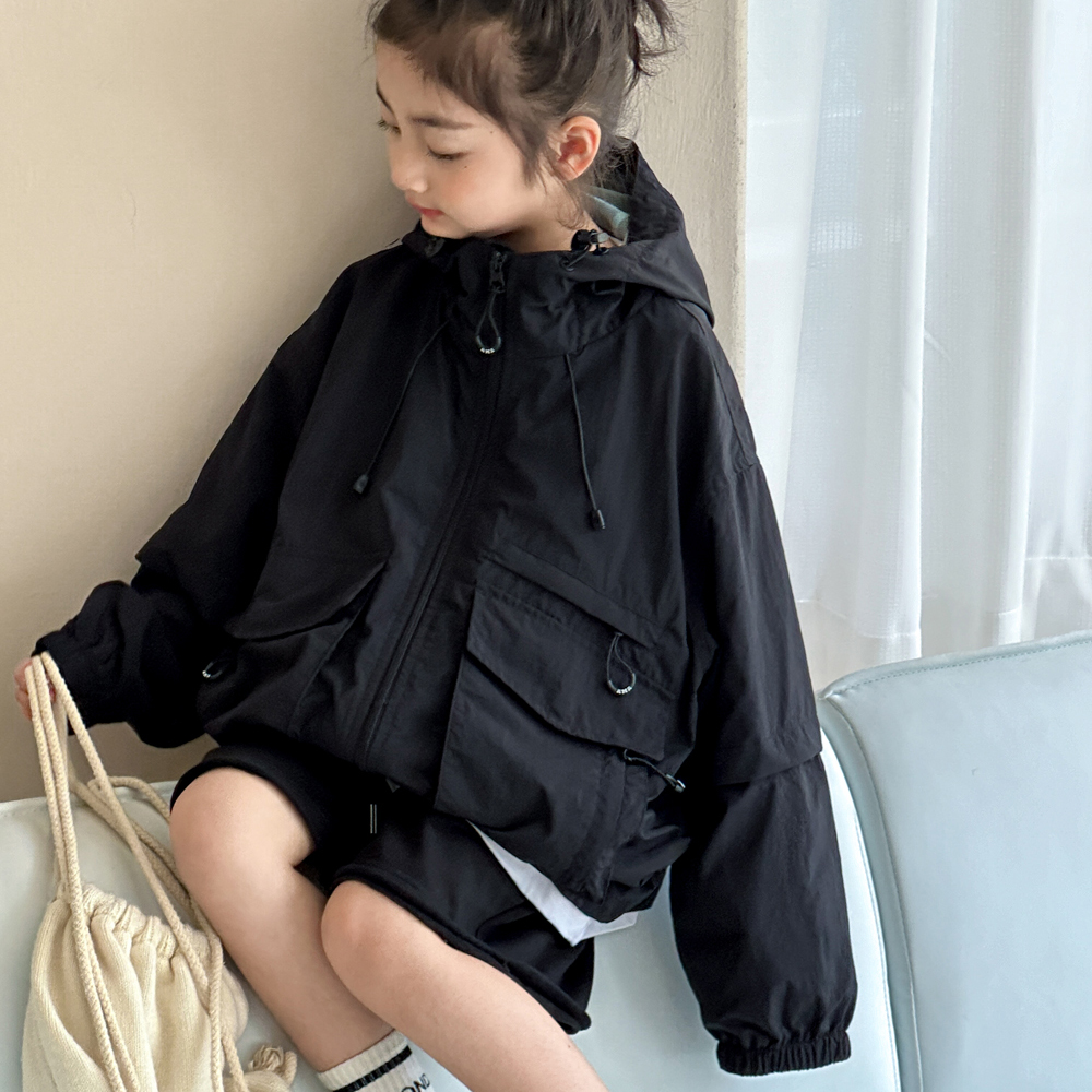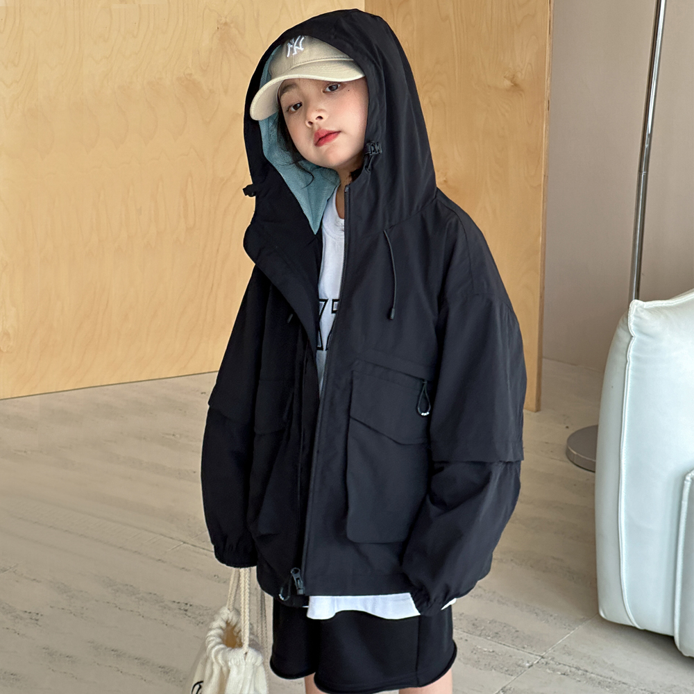 女童冲锋衣秋装2025新款儿童连帽工装上衣帅气女大童潮牌童装外套