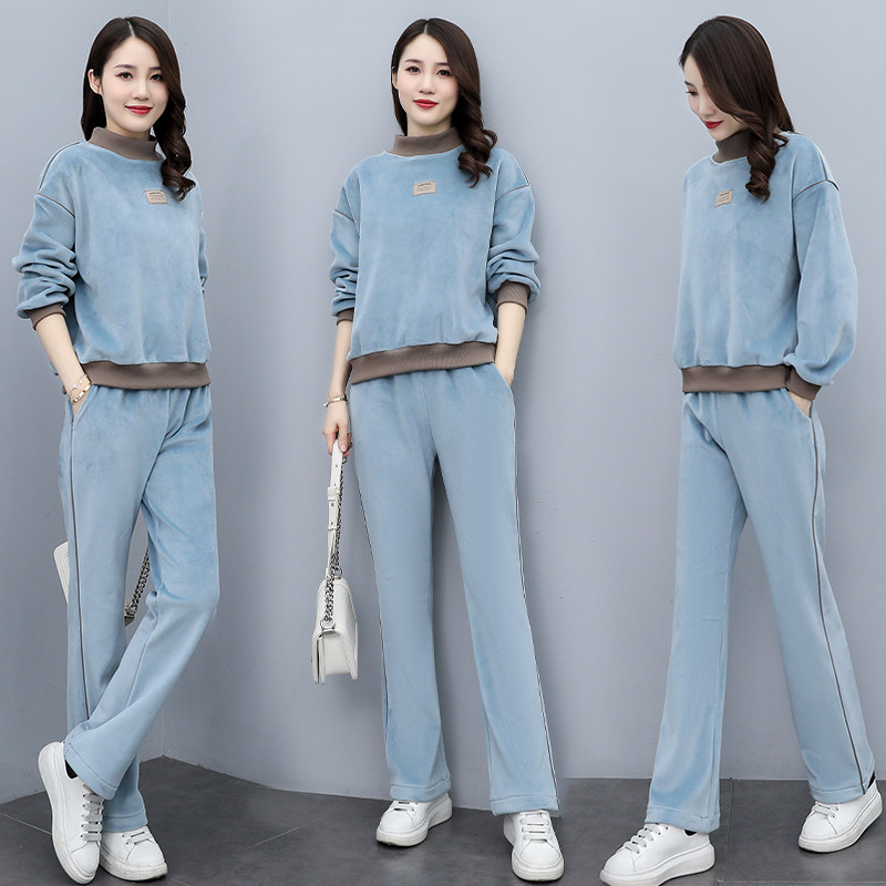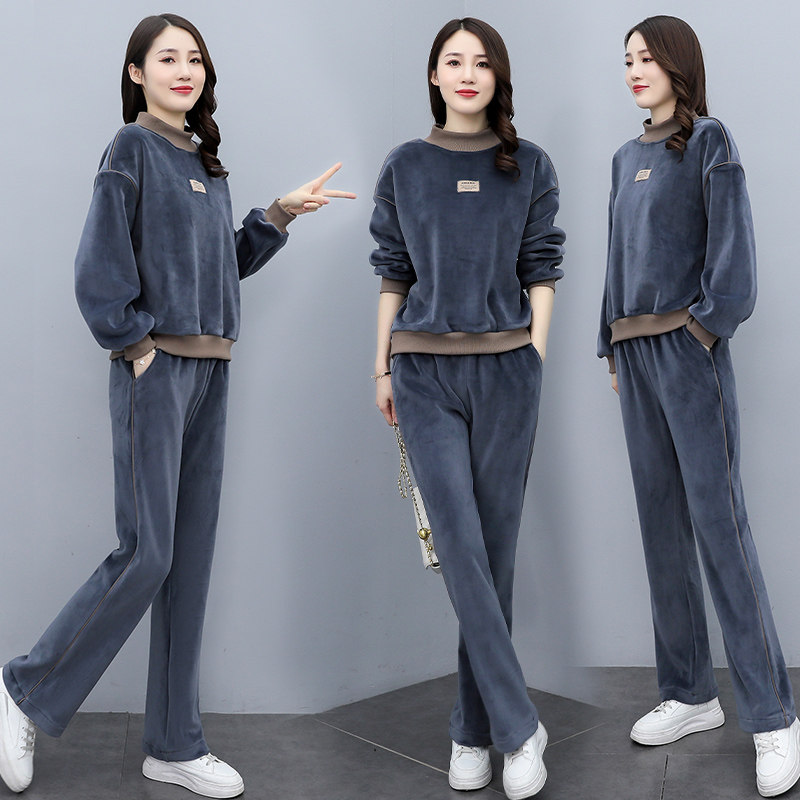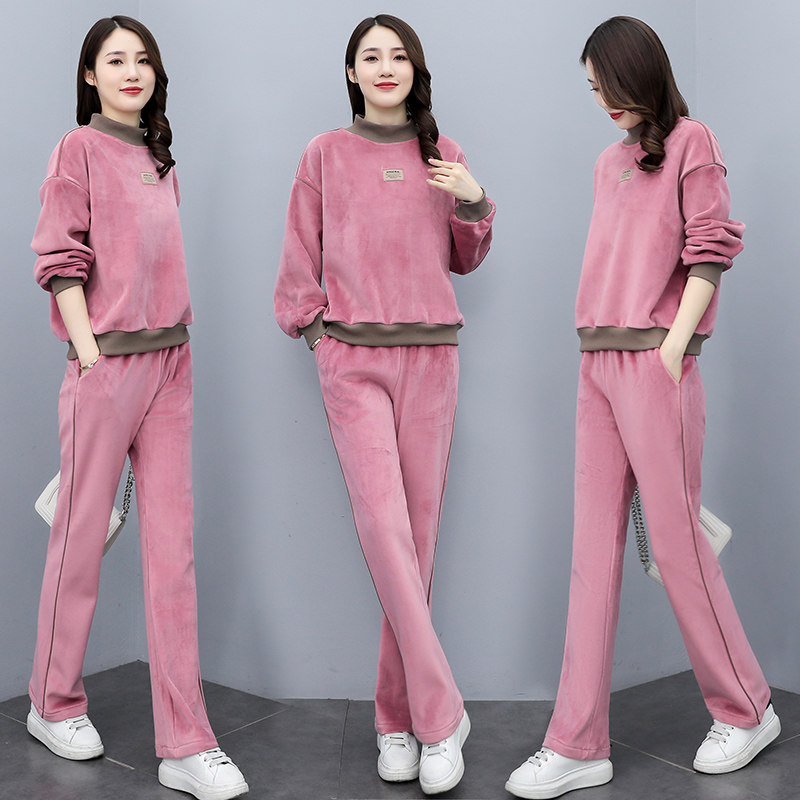 金丝绒套装女秋冬新款加厚加绒时尚气质宽松显瘦卫衣休闲两件套潮