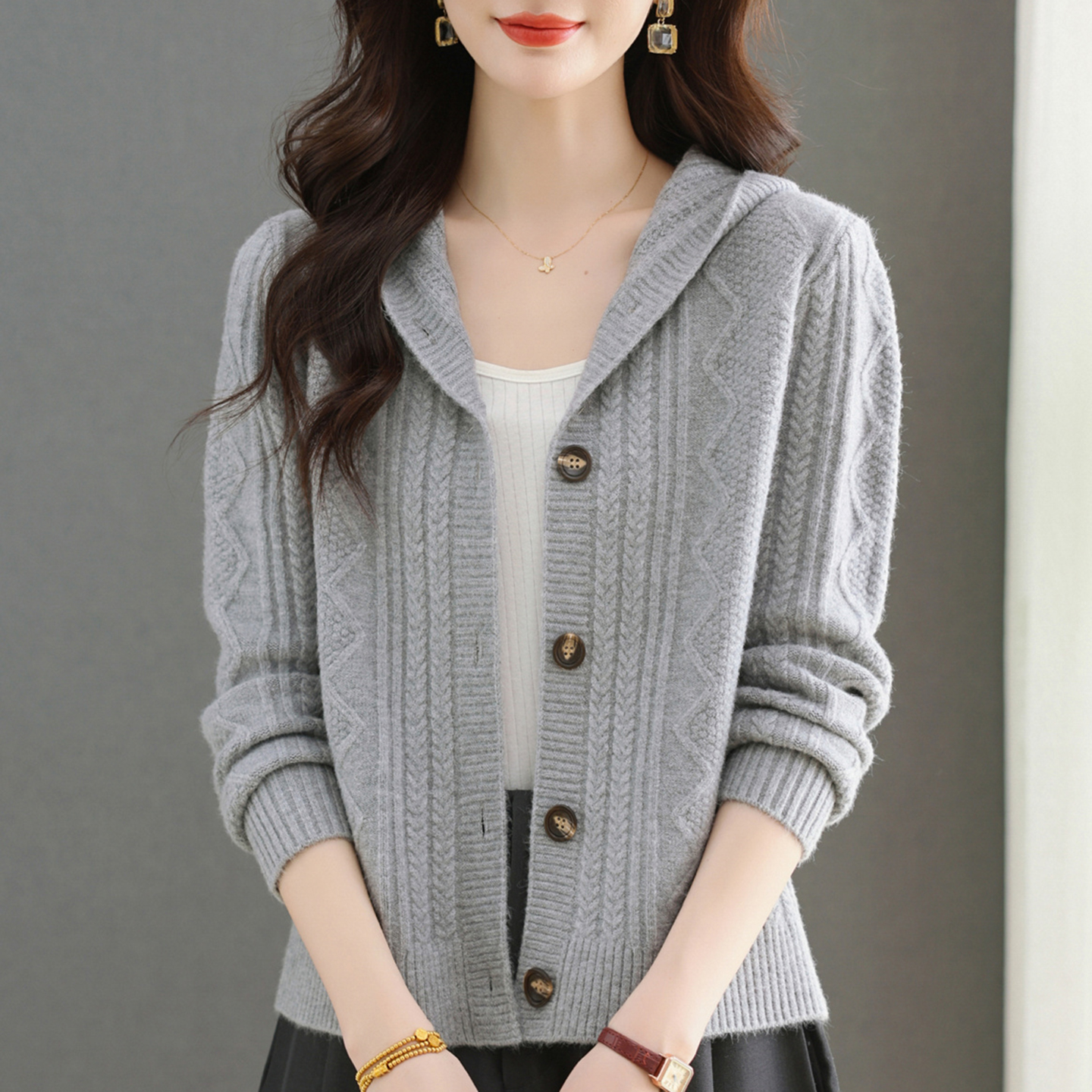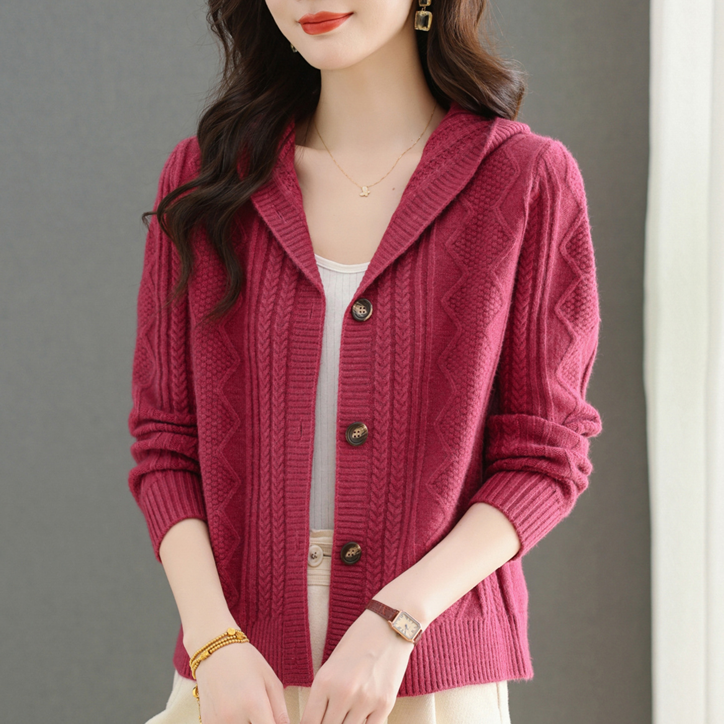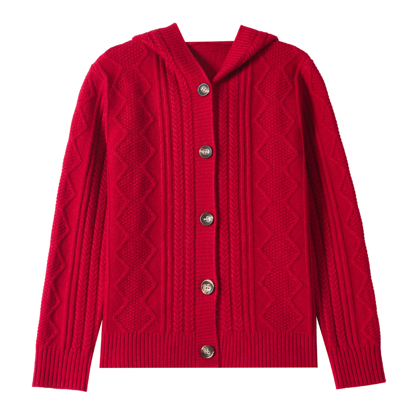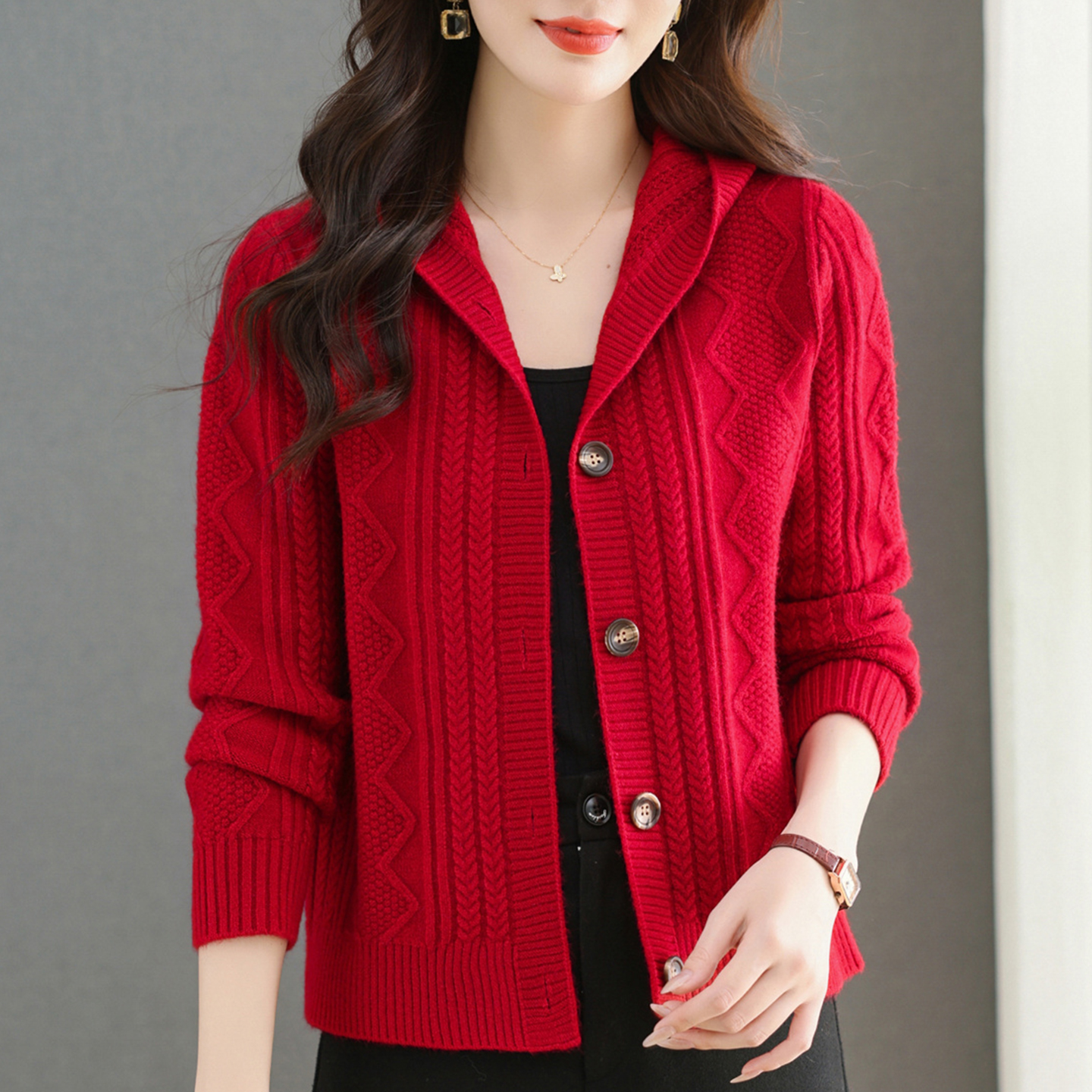 秋冬女士妈妈本命年红毛衣开衫2025新款宽松针织上衣连帽加厚外套