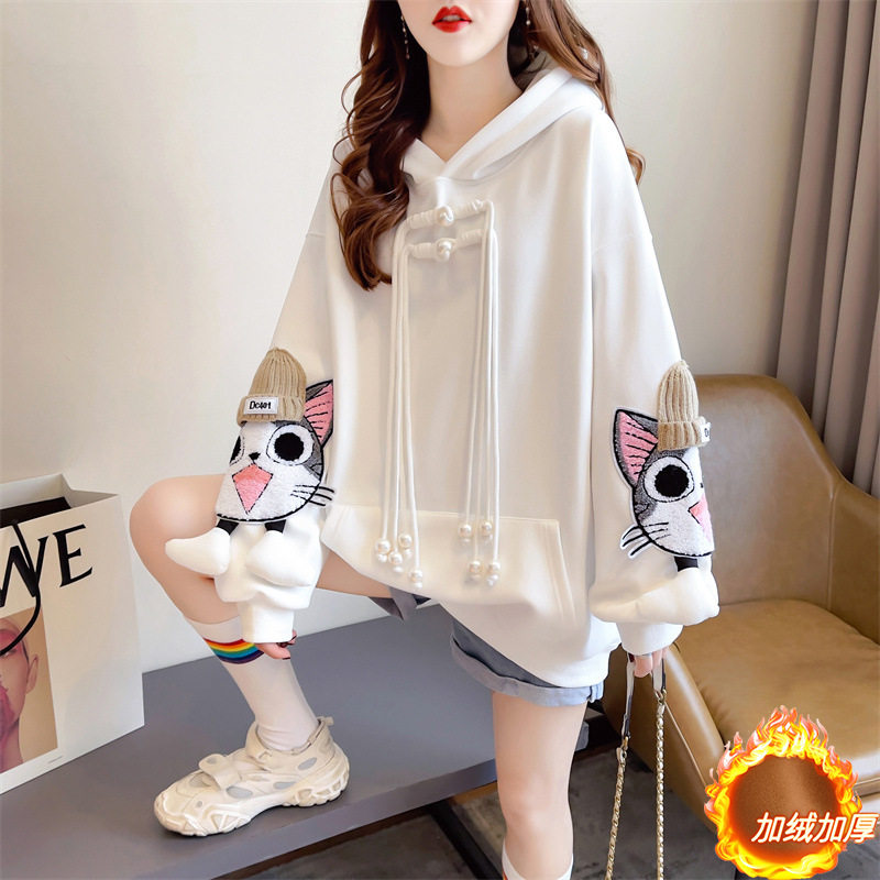 12秋冬中长款卫衣13初中高中学生宽松洋气岁女孩15加绒加厚外套16